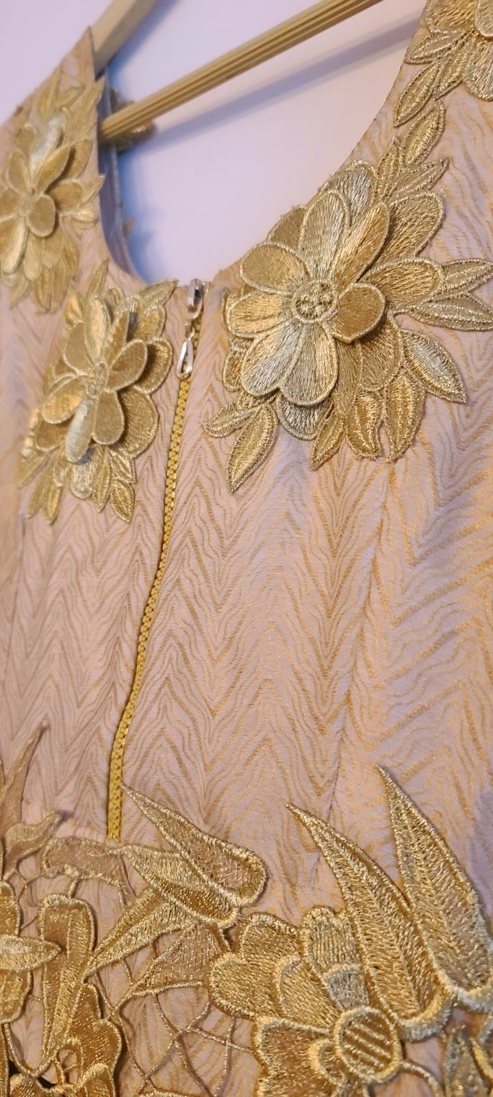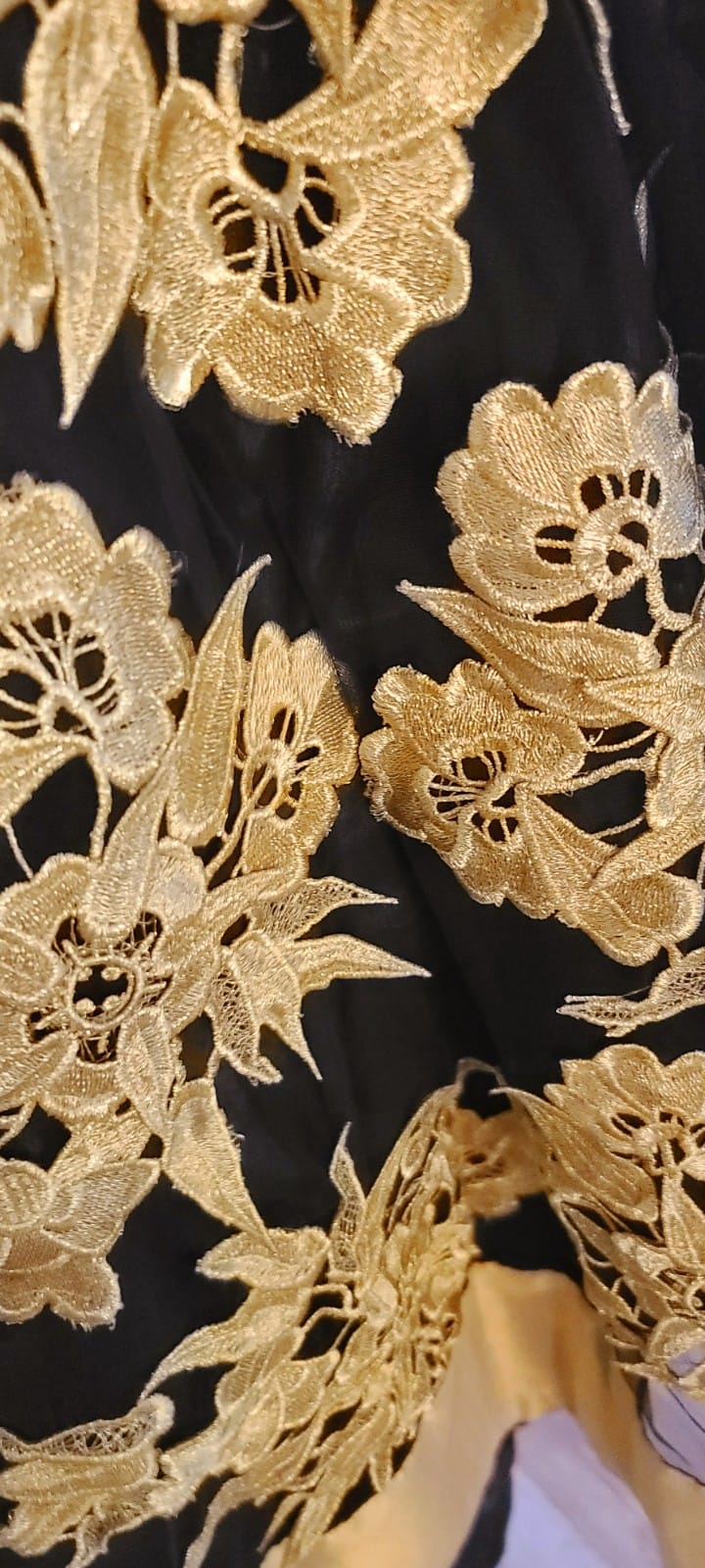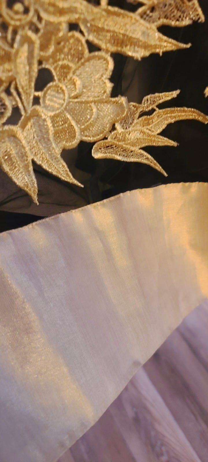 - Floor length Gown Colour Black & Golden Fabric- Net Full Sleeve Front Zip
