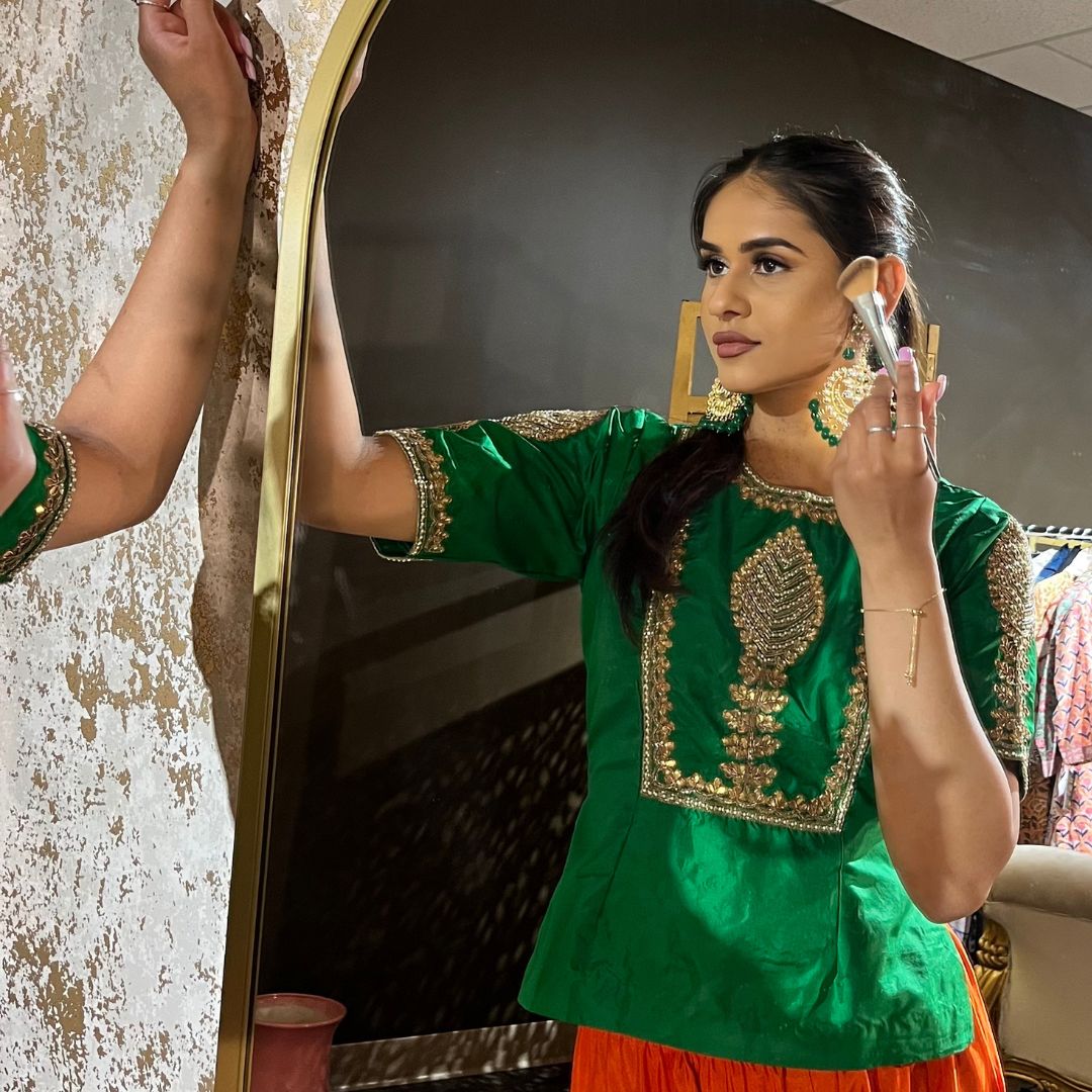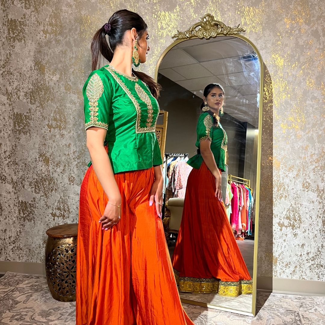 Bottle Green Lehenga with Gold Finishes – Perfect for Mehendi or Sangeet