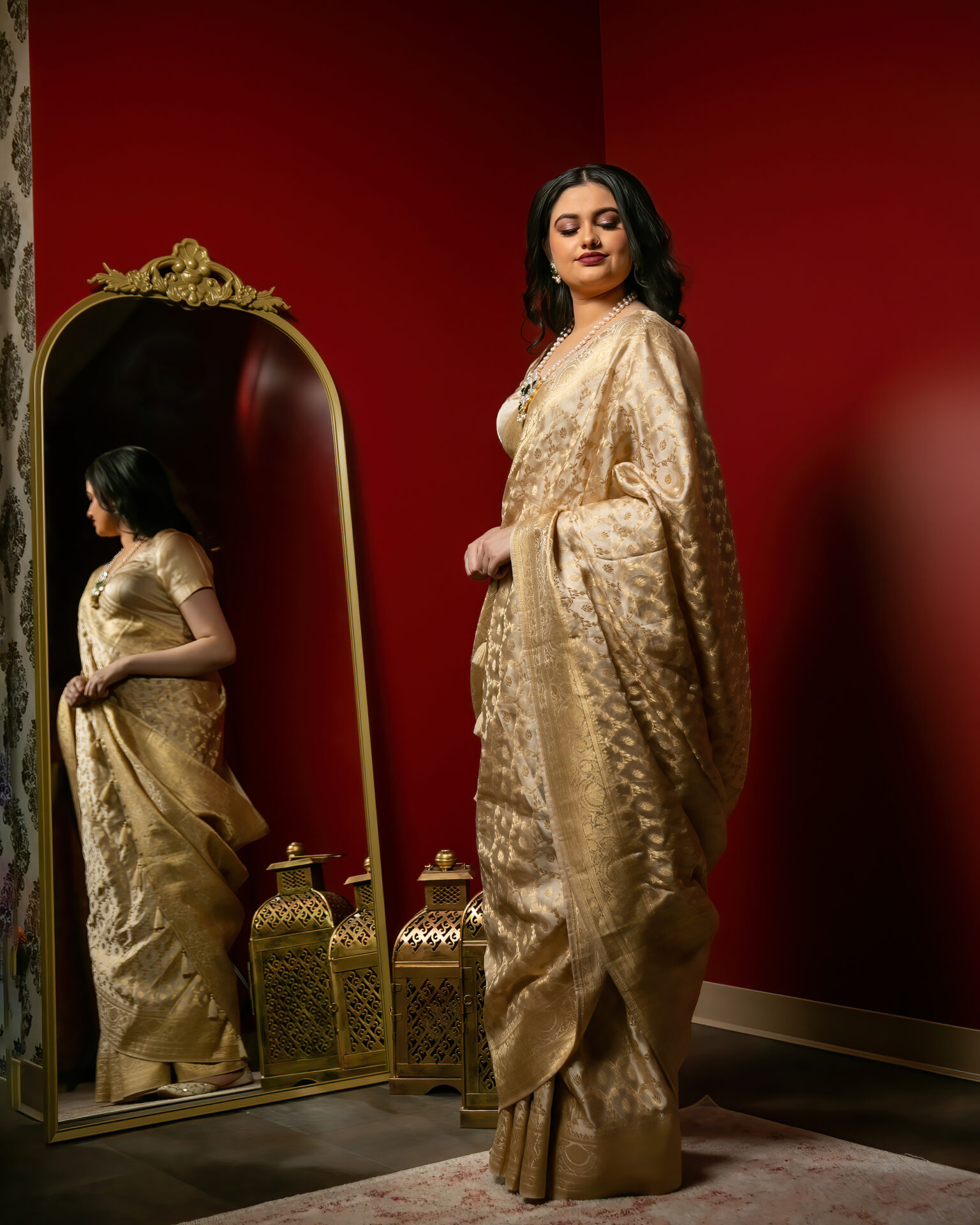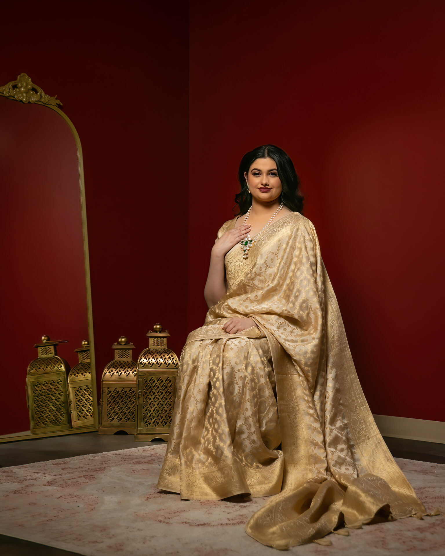 Golden Shimmer Sari with Heavy Embroidered Sequence Work Blouse