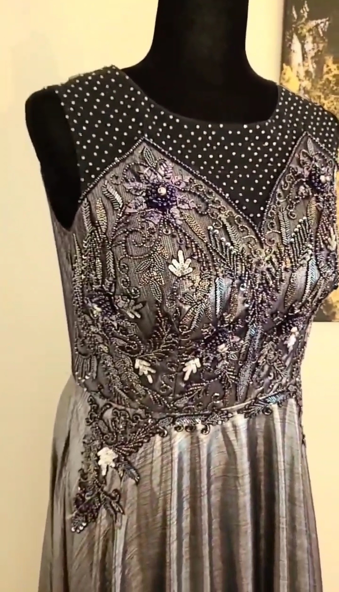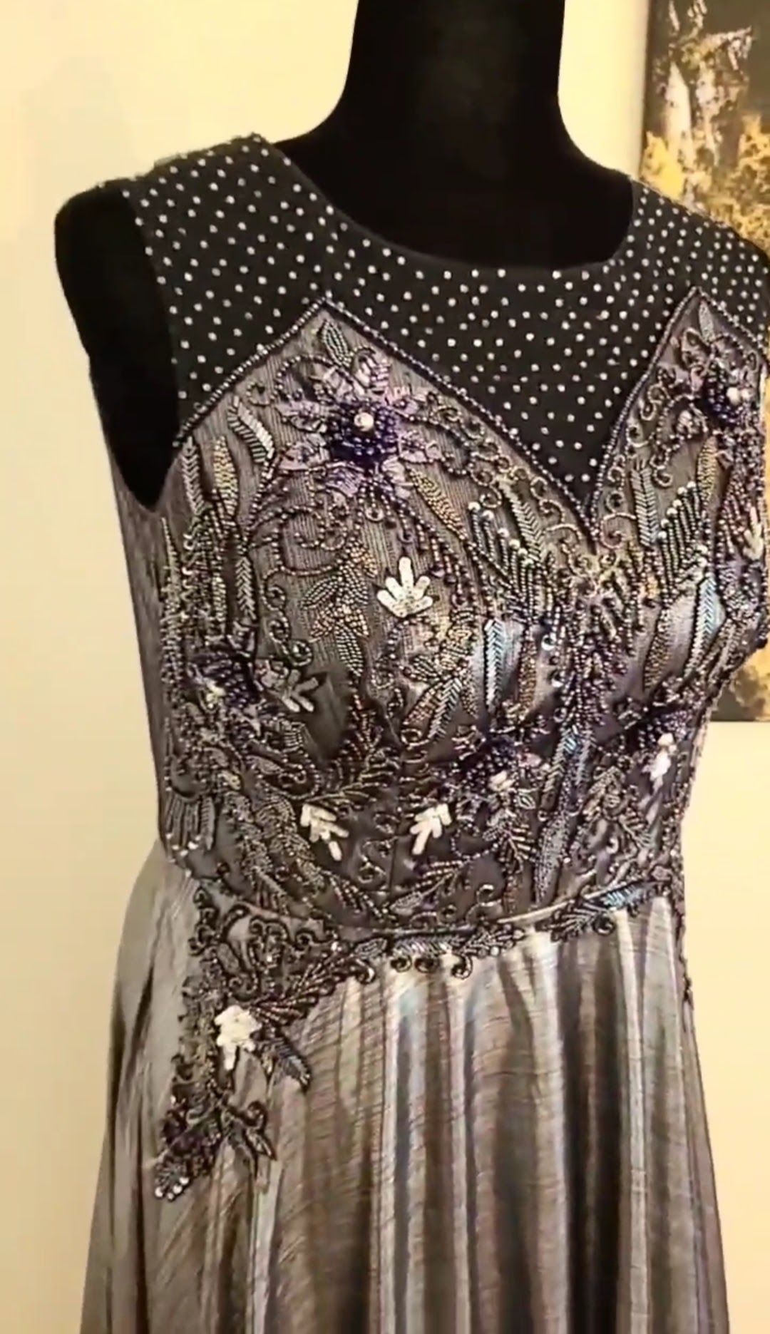 - Floor length Gown Color Black Material -Fine Party-wear and net on upper body block Sleeveless Padded Cup Side Zip