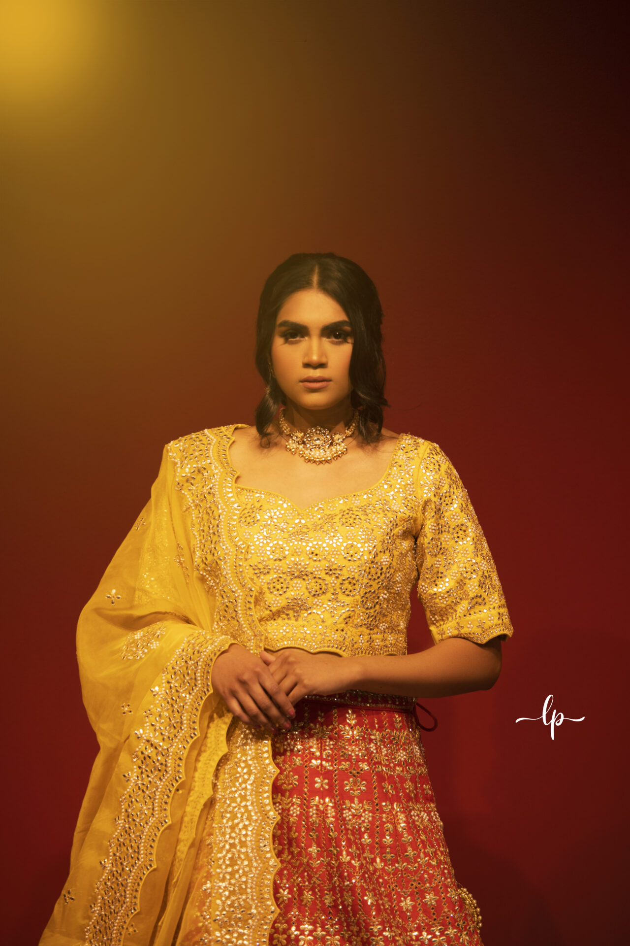 - Customized Designer Heavily Embroidered Lehenga, Choli, Dupatta set.