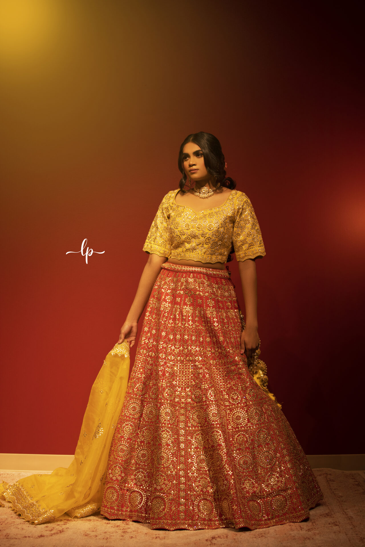 - Color- Red & Yellow Fabric : Silk Dupatta: Net Full Heavy Gotta Patti Handwork Embroidery