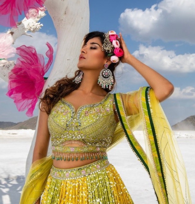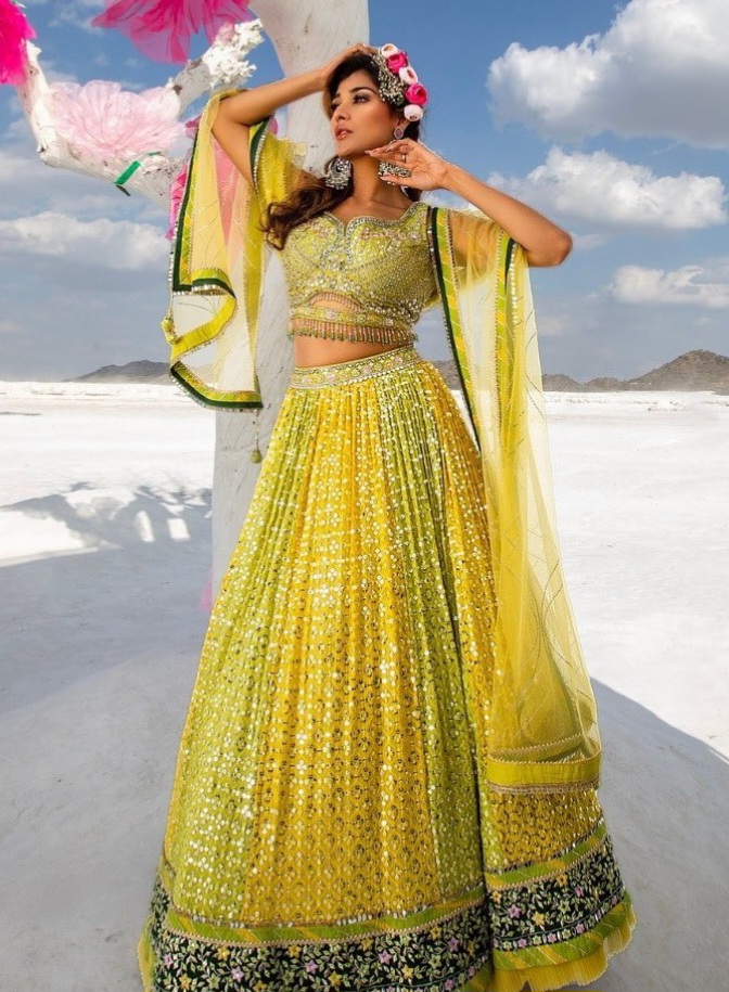 Designer Georgette Lehenga Blouse with Heavy Handwork Lime Green Yellow