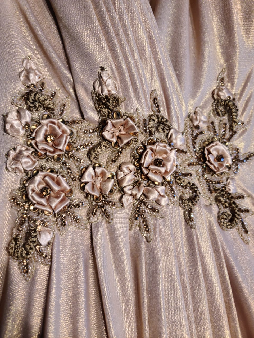 - Hand Embroidery Full Flair Dress Neck Embroidery Heavy Flare Gown