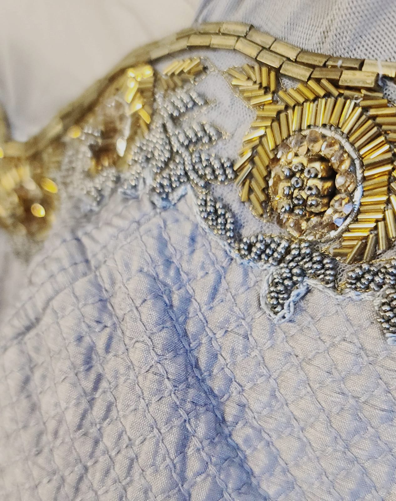- Color – Gray Sleeveless Gown Boot Neck Embroidery Floor Length Heavy Flare Gown