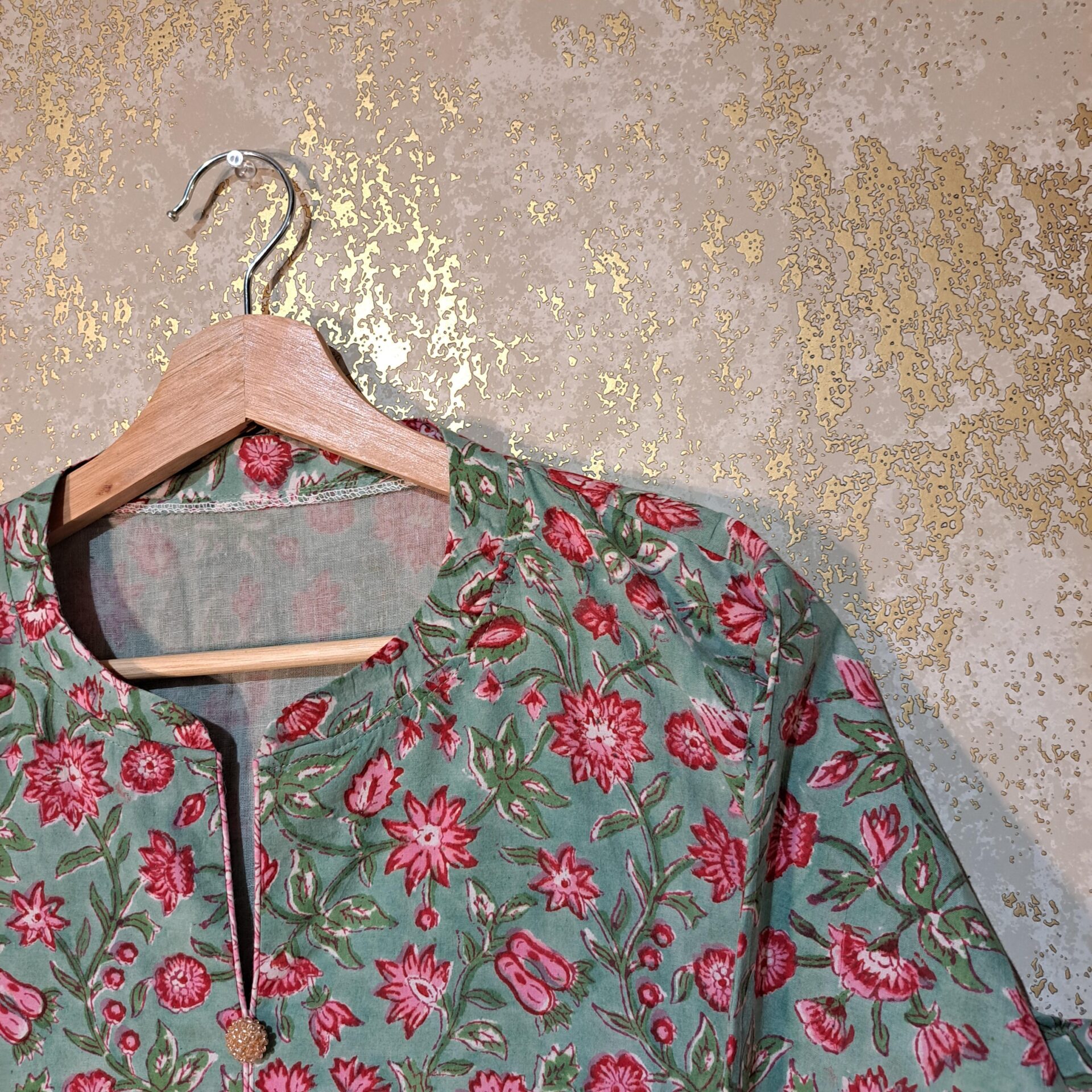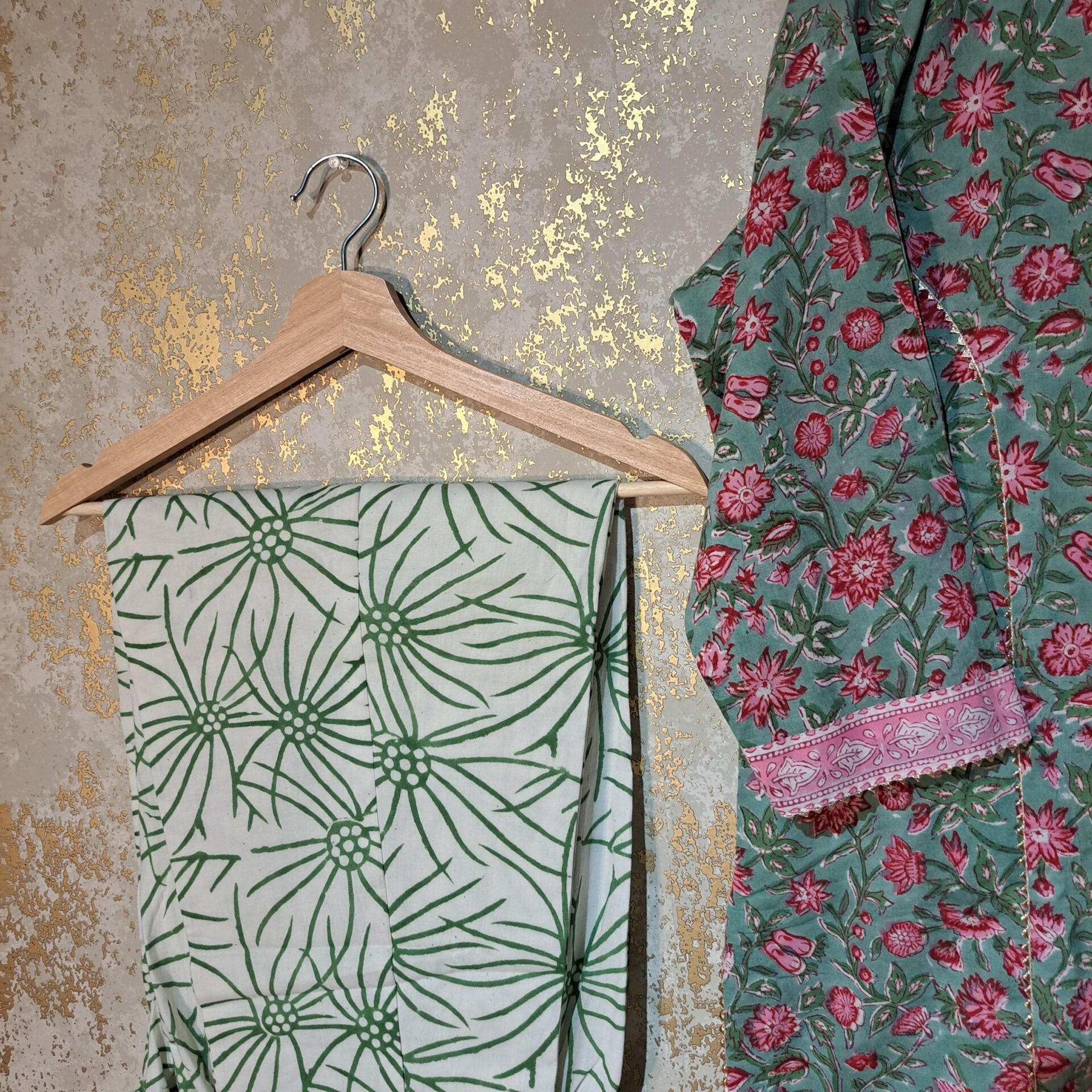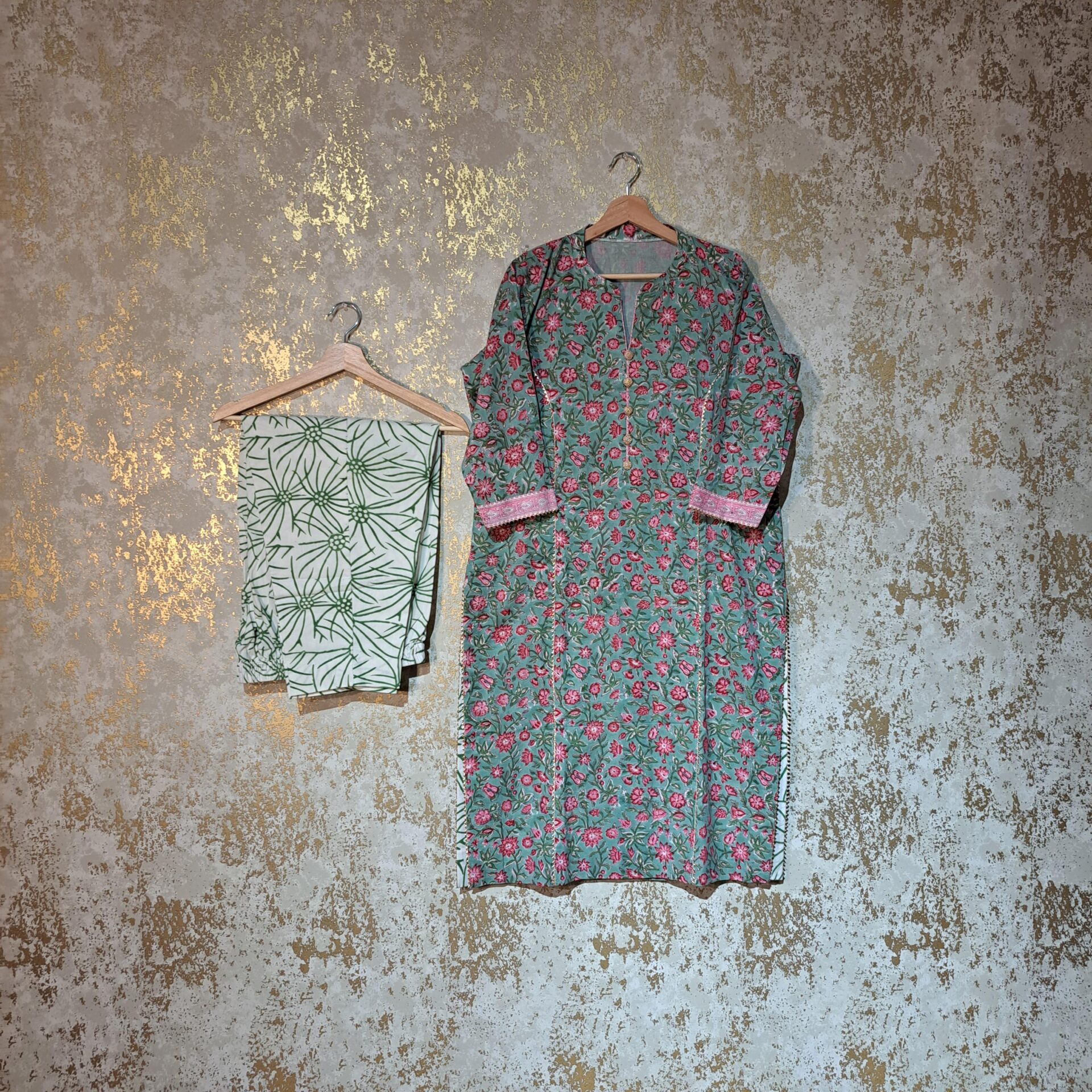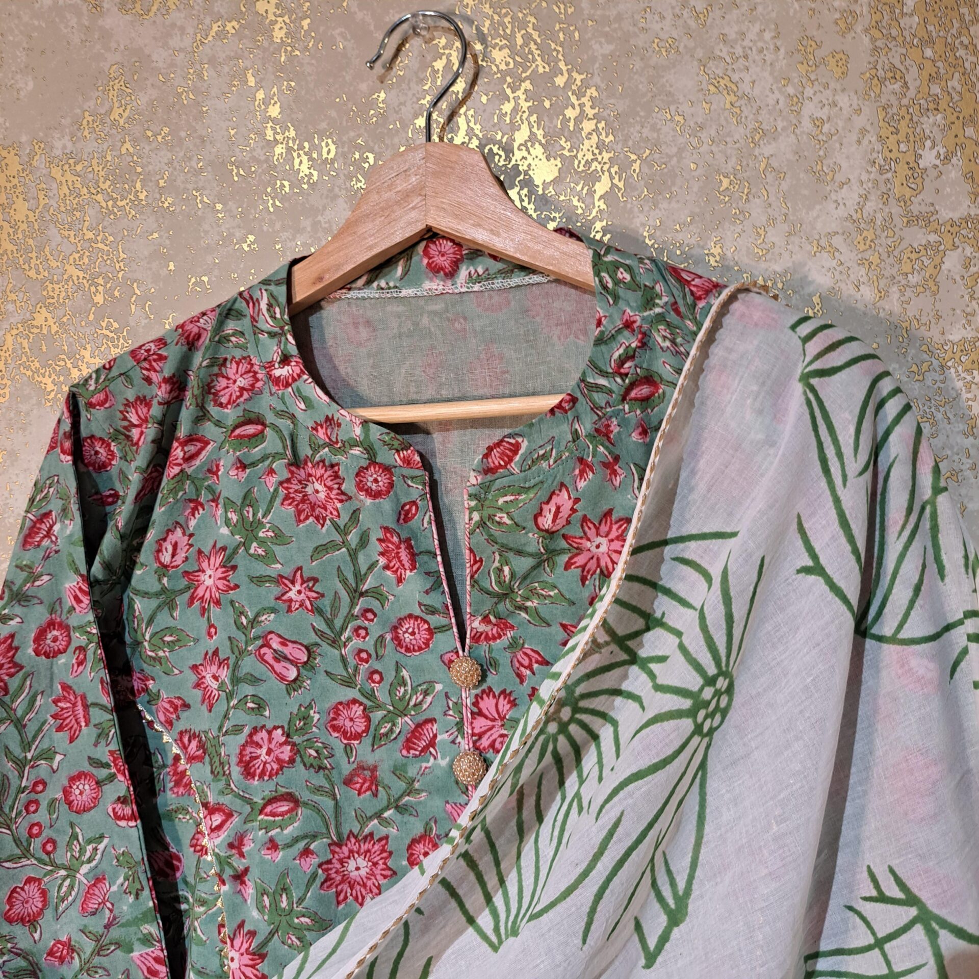 12 reviews for Designer Green Floral Block Printed Pure Cotton Casual Trouser Punjabi Suit with Dupatta Dresses