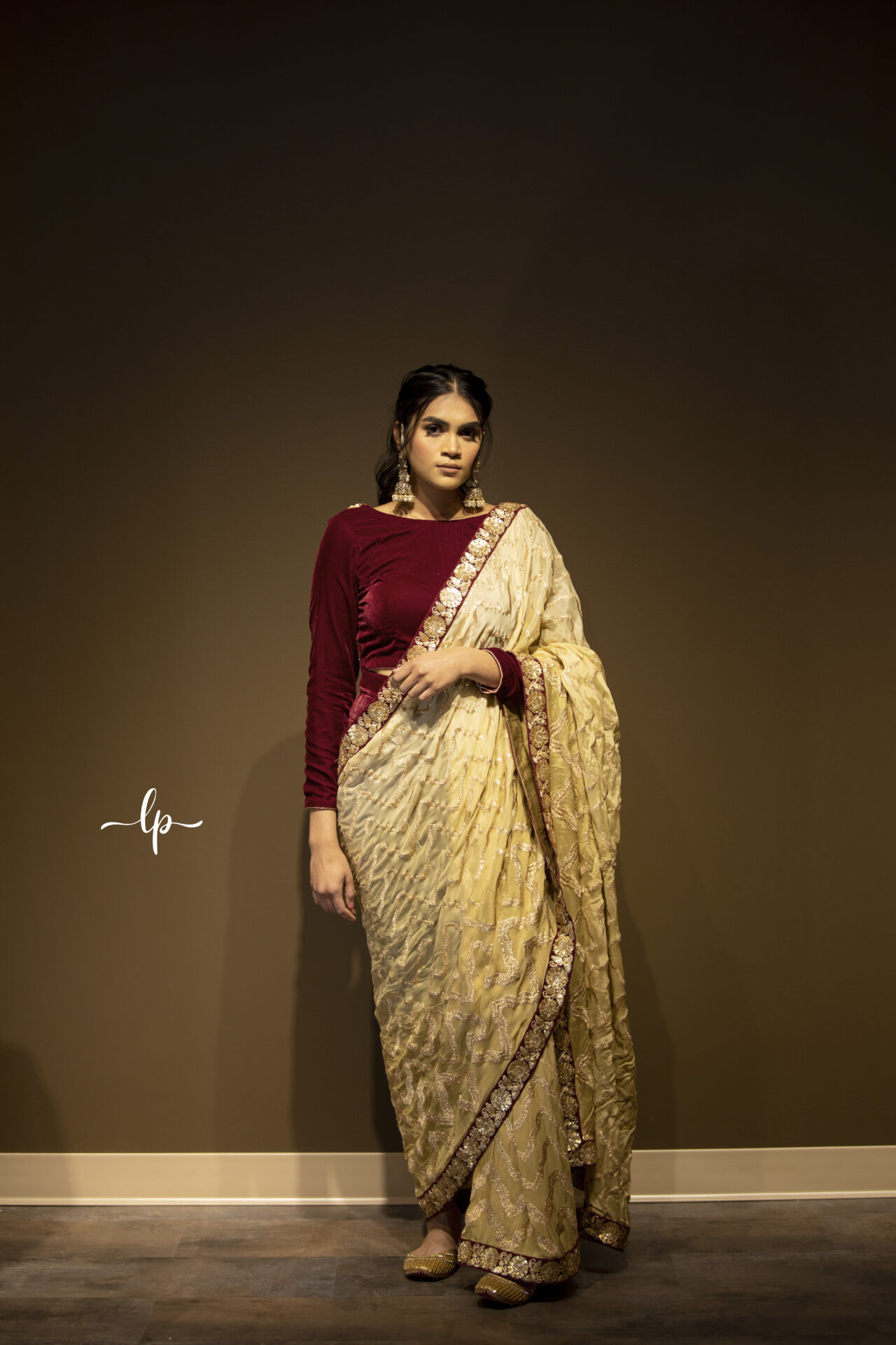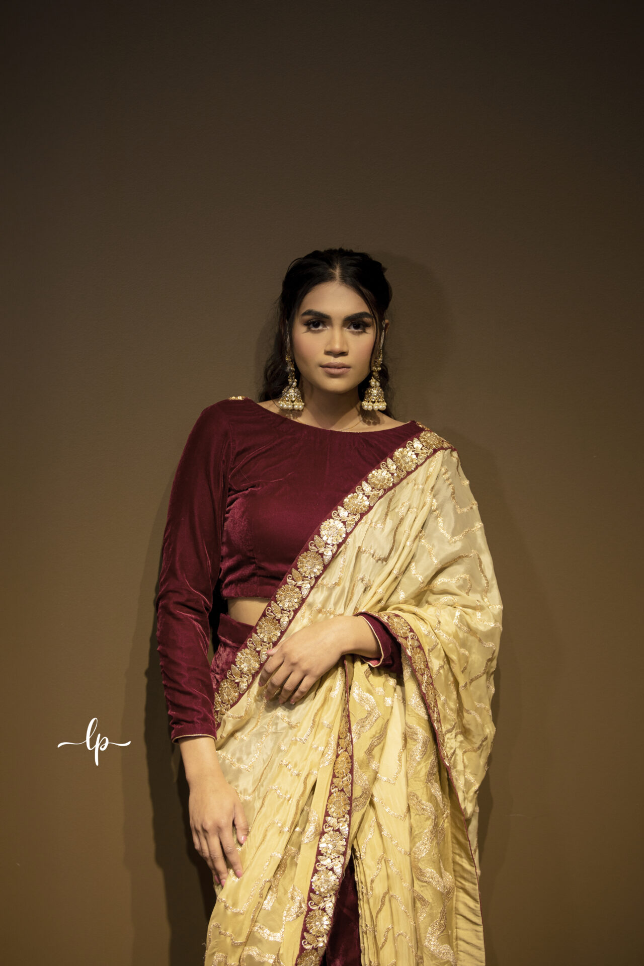 Golden Shimmer Sari with Heavy Embroidered Sequence Work Blouse
