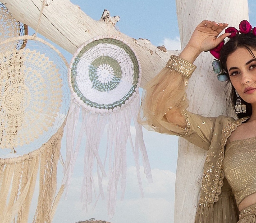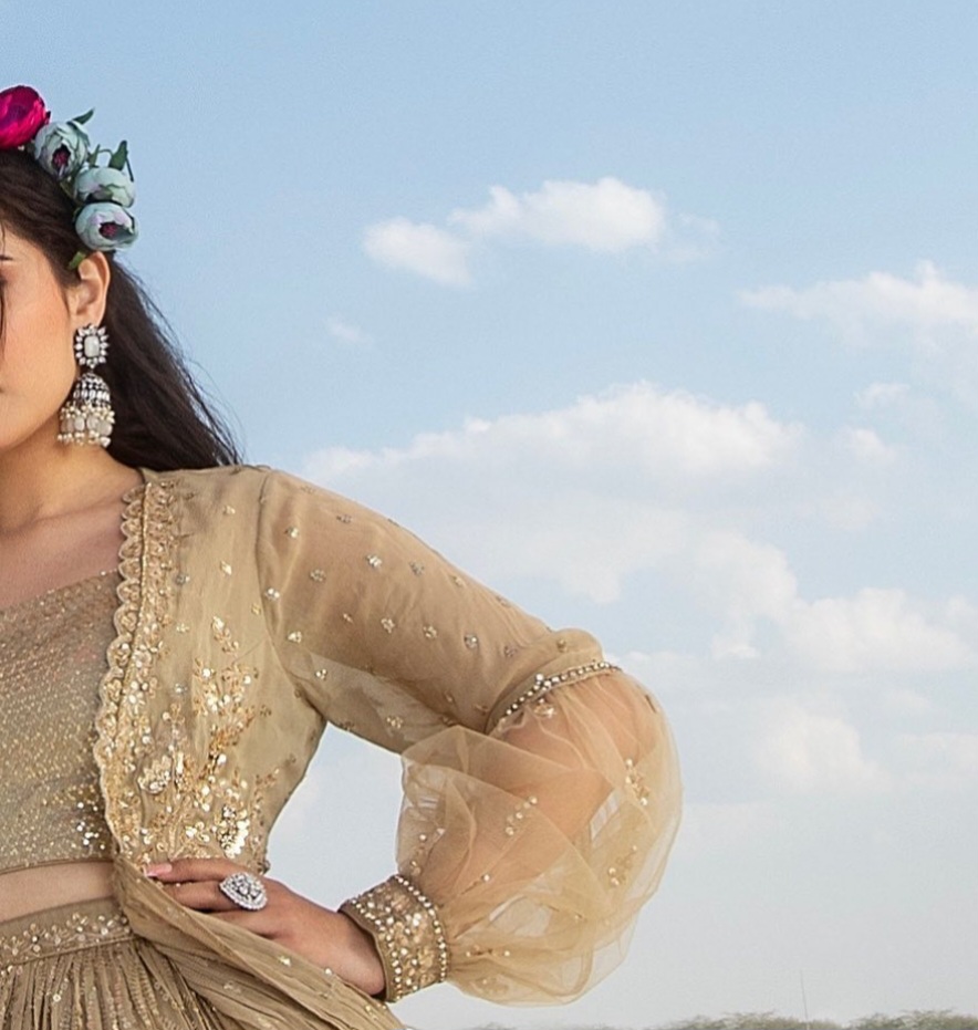Material: Georgette, Net , Thread, Mirror , Embroidery Colour: Cinnamon, Sizes: XS-XL (Please mention in your order the fittings you might need) Occasions: Mehendi, Sangeet, Dholki, Maiyan, Watna, Wedding , Party