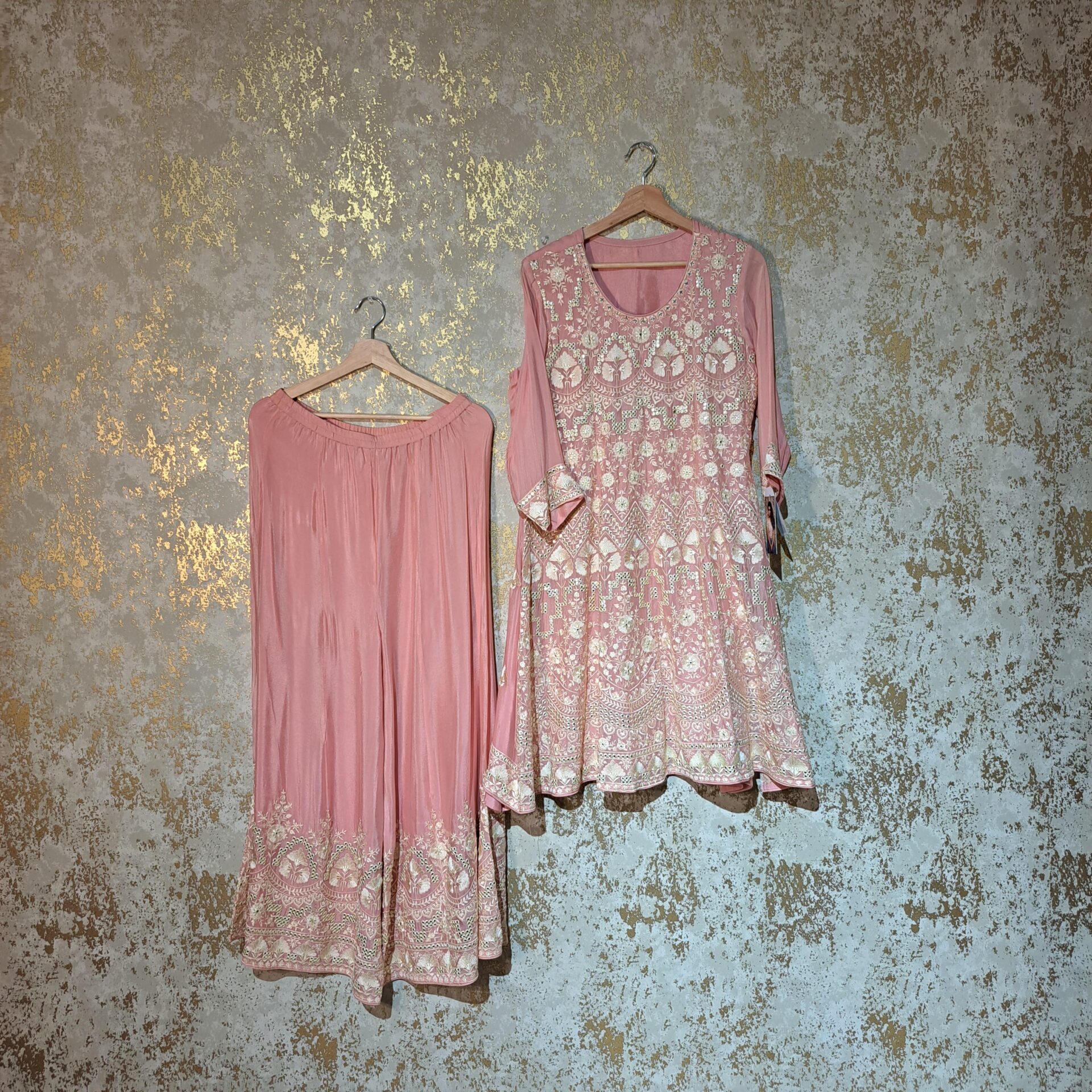 - Customized Designer Embroidered Suit,Shirt Palazzo Dupatta Set.