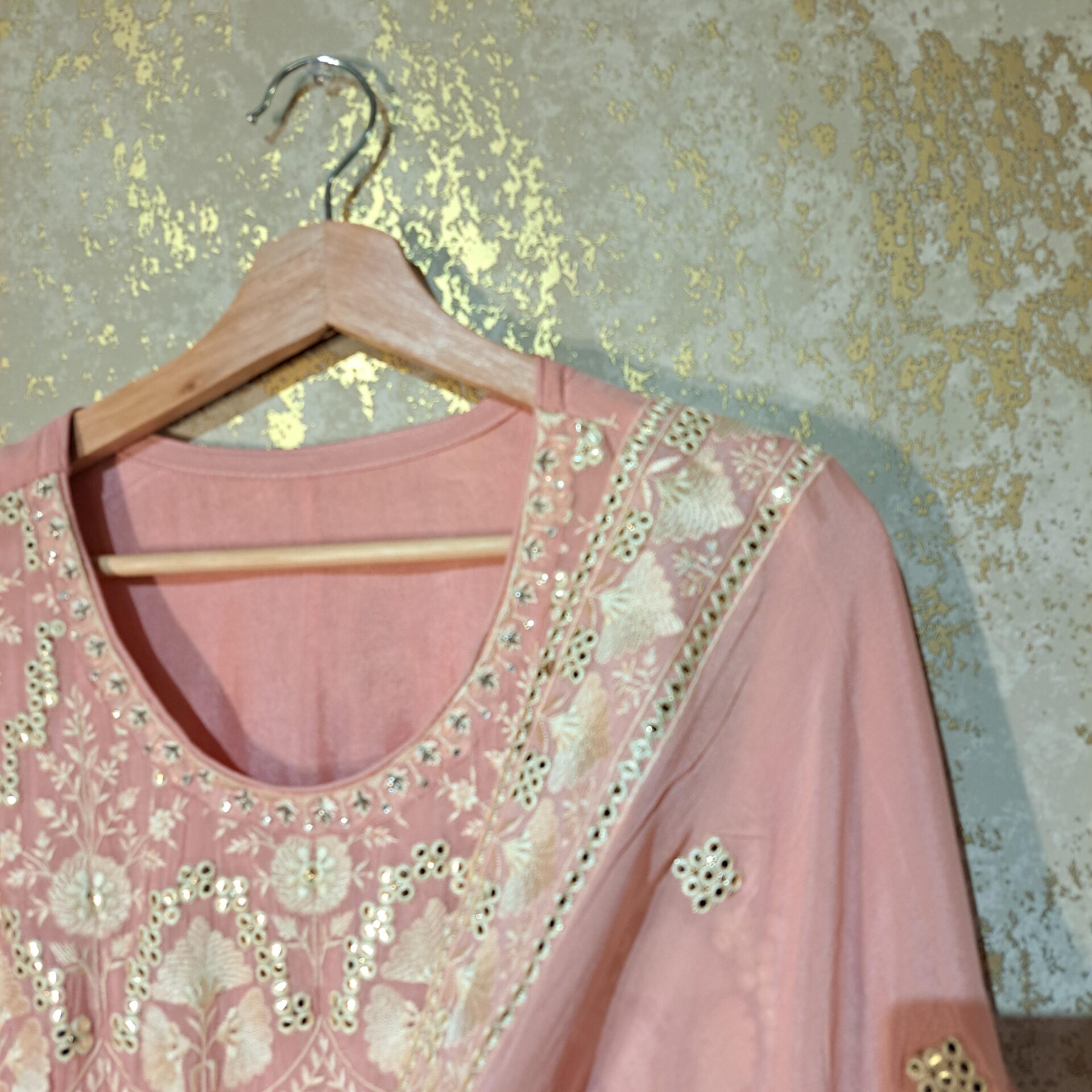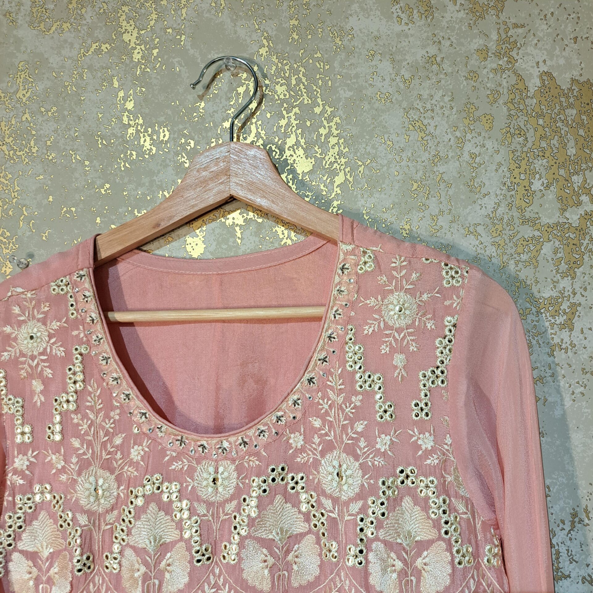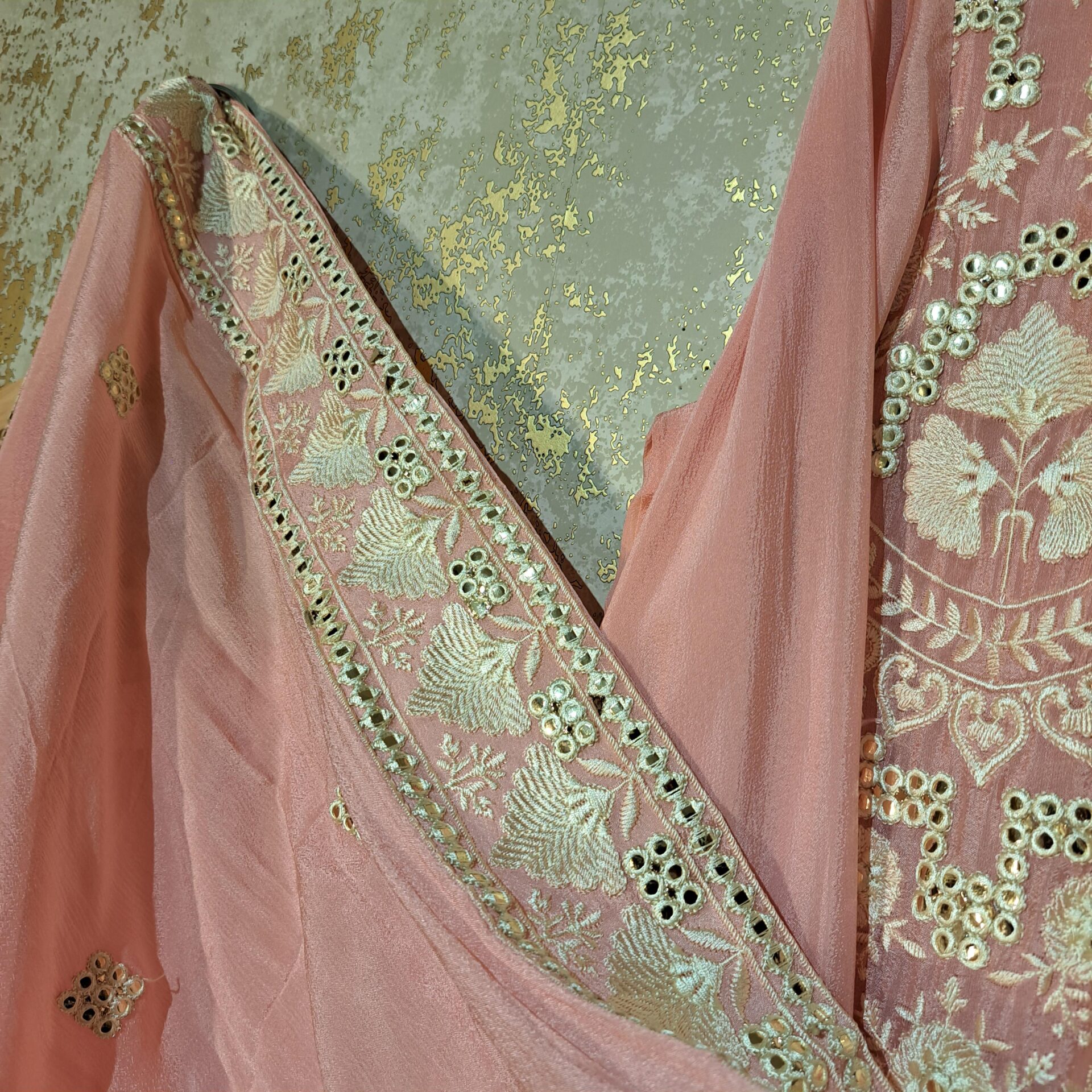 - Thread Mirror Work Full Heavy Embroidery Completely Stitched Suit with Tafta Inner