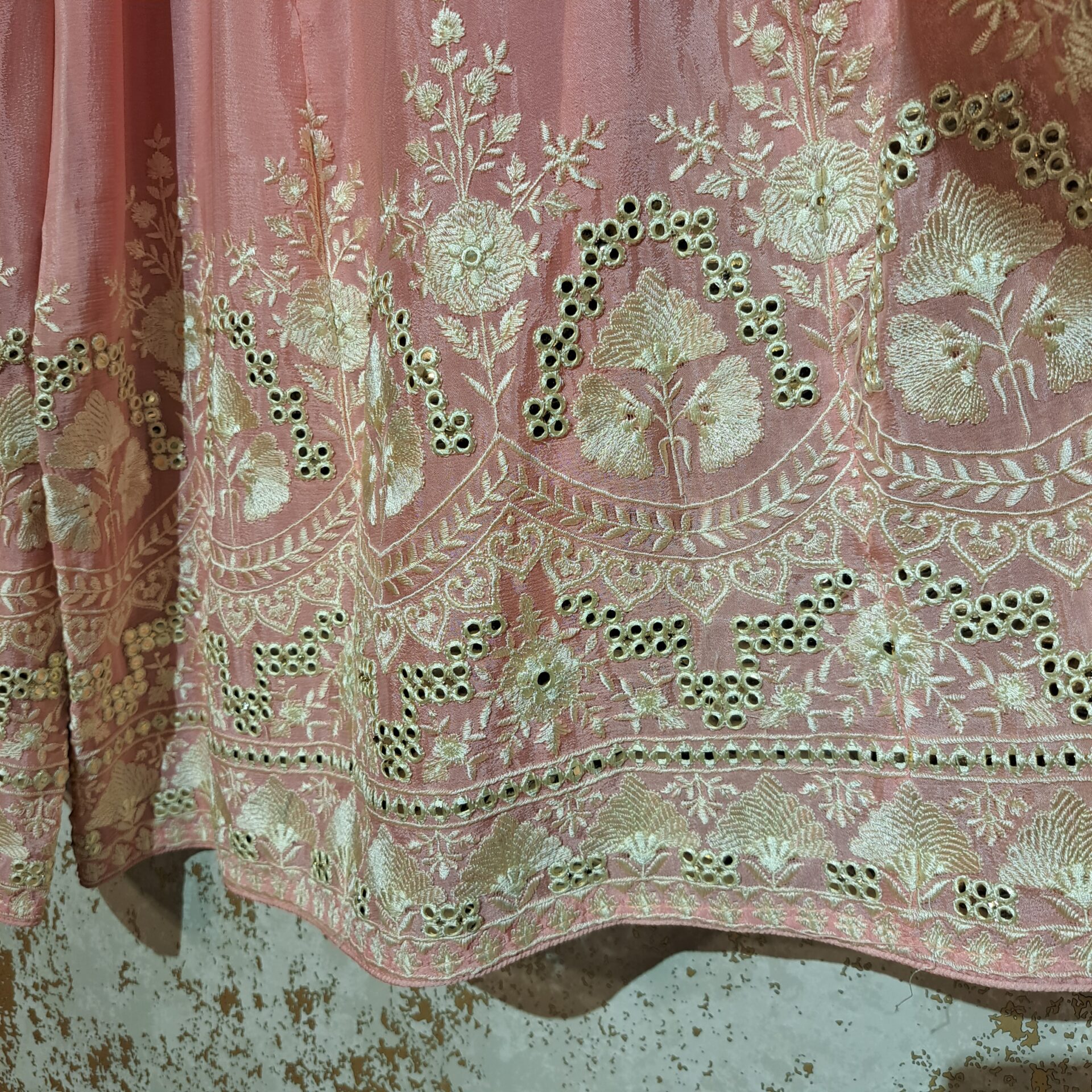 - Fabric: Georgette Color Pink Dupatta Four Side Embroidered Border