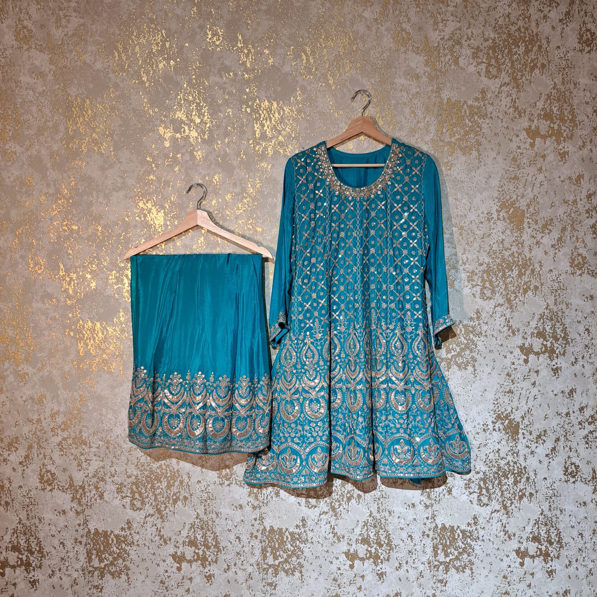 - Customized Designer Embroidered Suit,Shirt Palazzo Dupatta Set.