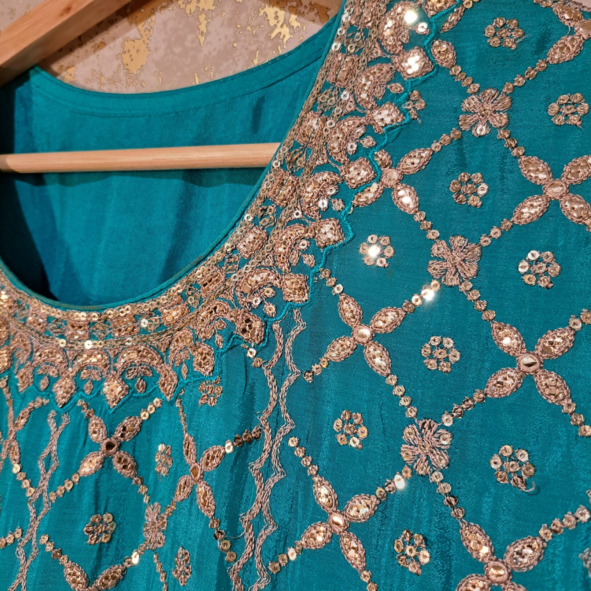 - Tilla Sequence Work Full Heavy Embroidery Completely Stitched Suit with Tafta Inner