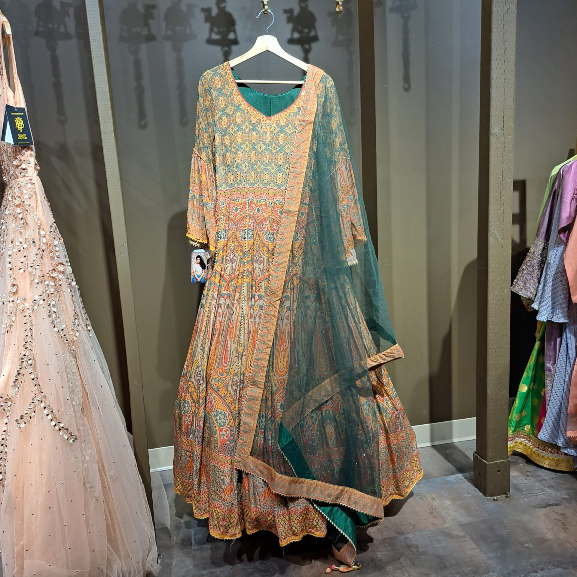 - Floor Length Colour Multi-color Dupatta Fabric- Net Four Side Border Full Sleeves