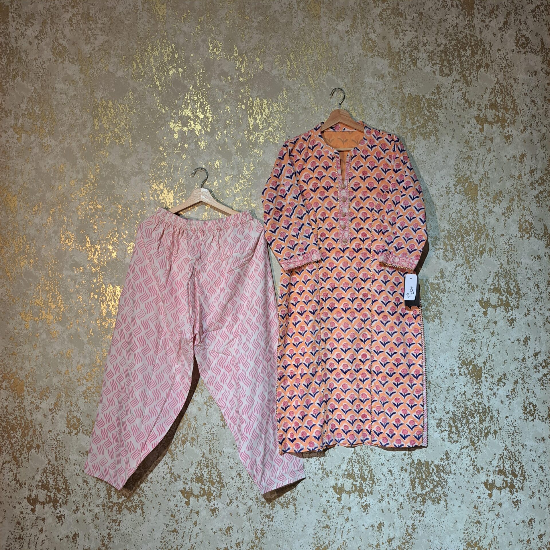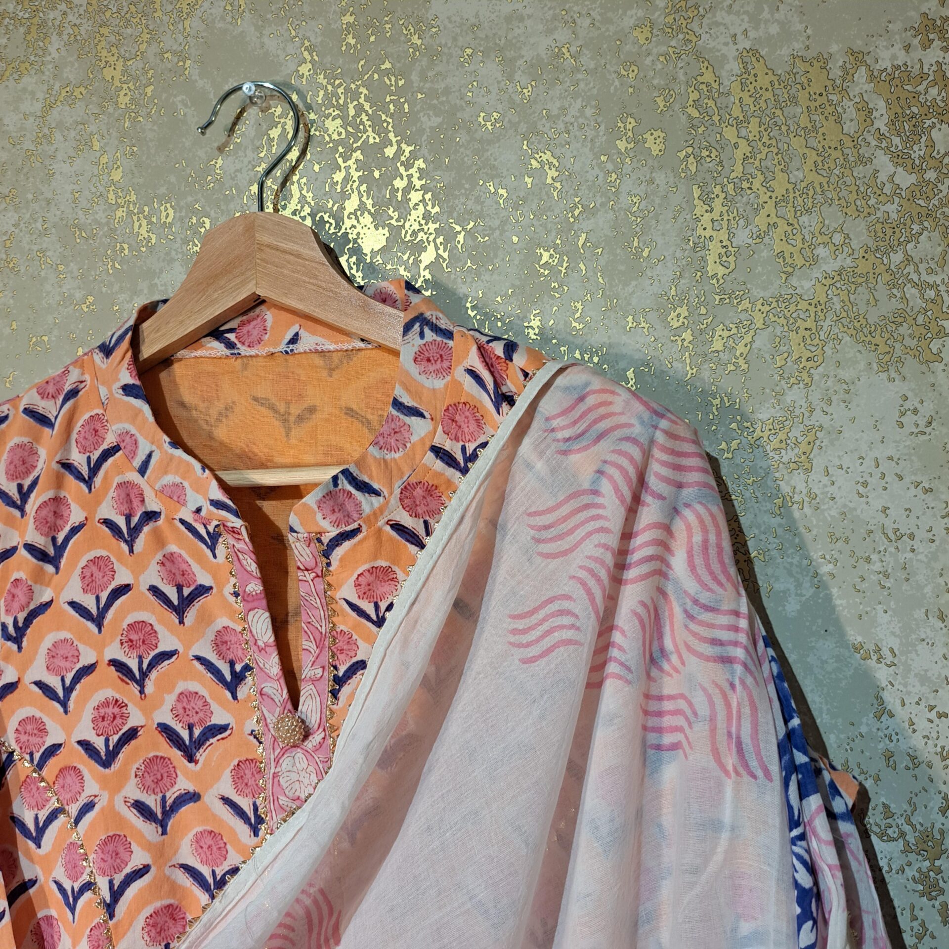11 reviews for Designer Peach Pink Floral Block Printed Pure Cotton Casual Salwar Suit with Dupatta Dresses