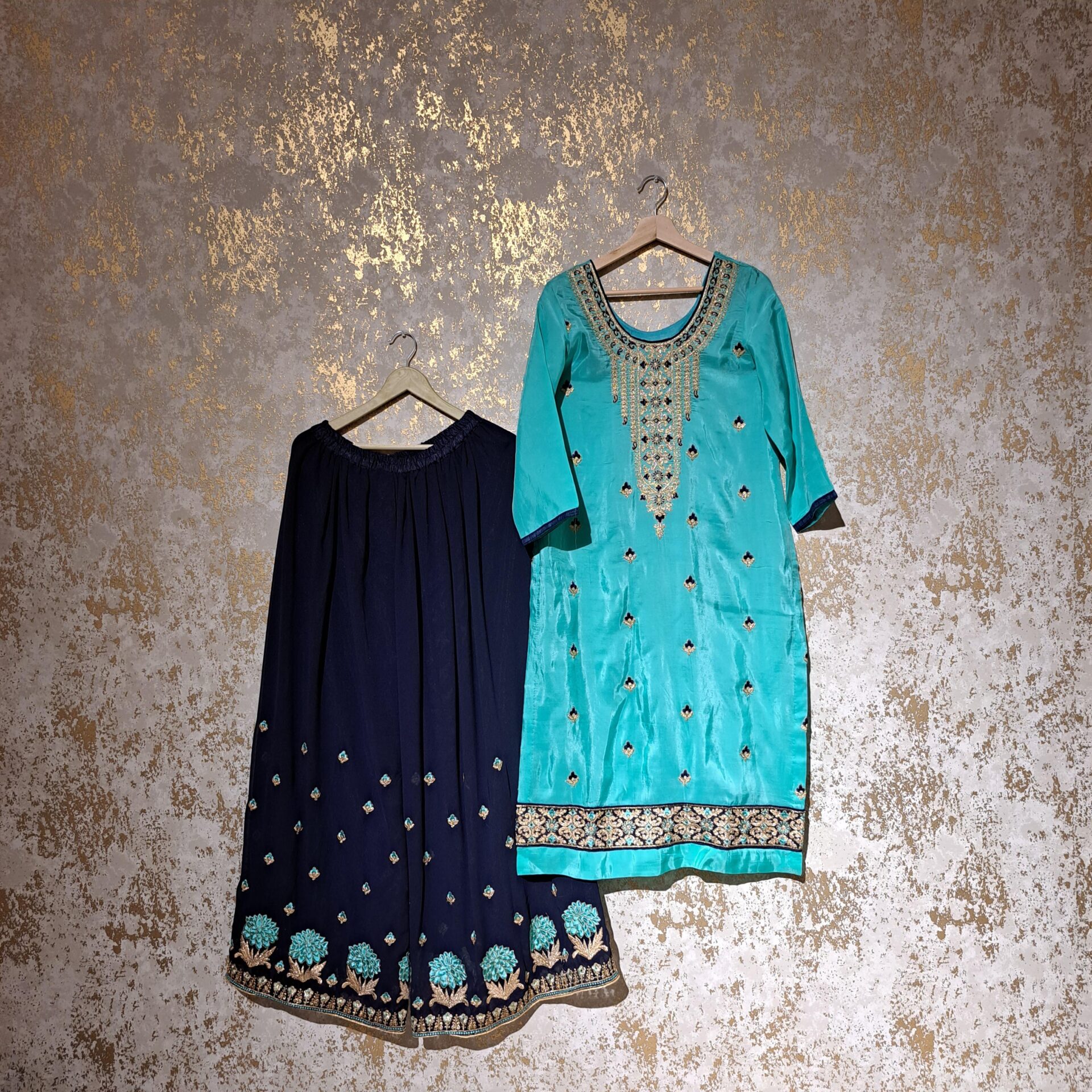 14 reviews for Designer Firozi & Navy Blue Party Wear Palazzo Suit With Dupatta Dresses Ladies Girls Ethnic Wear Indian Handmade Boutique