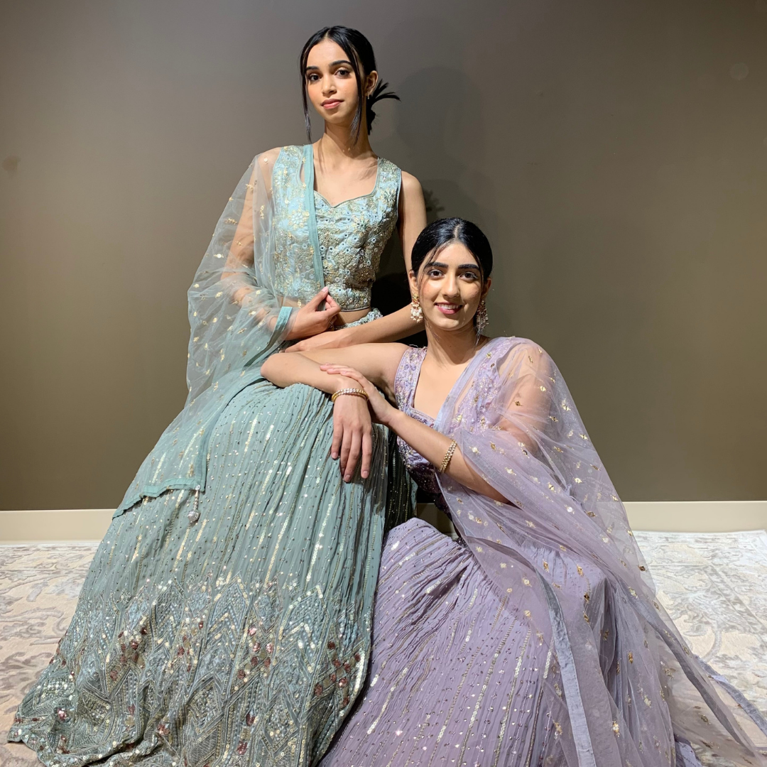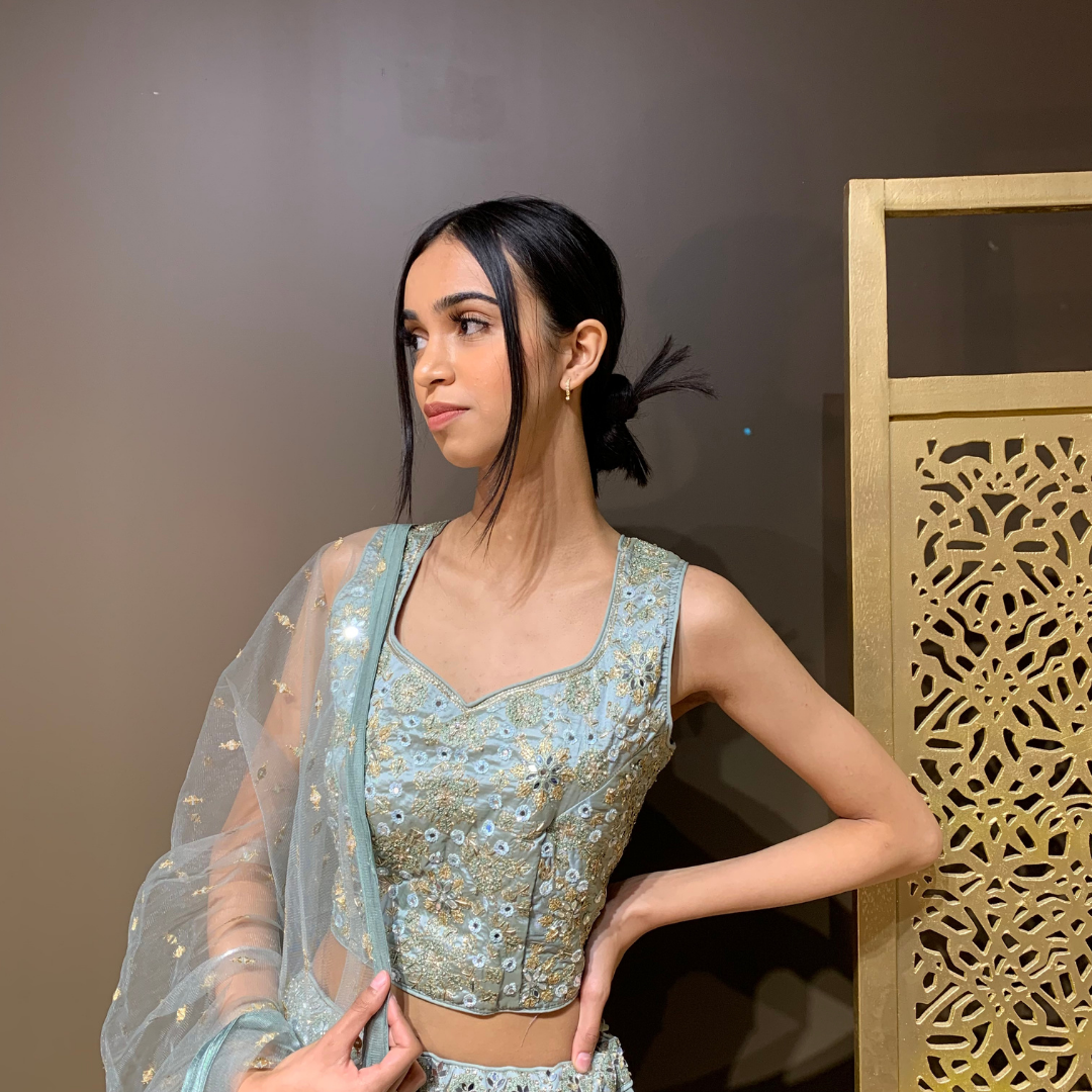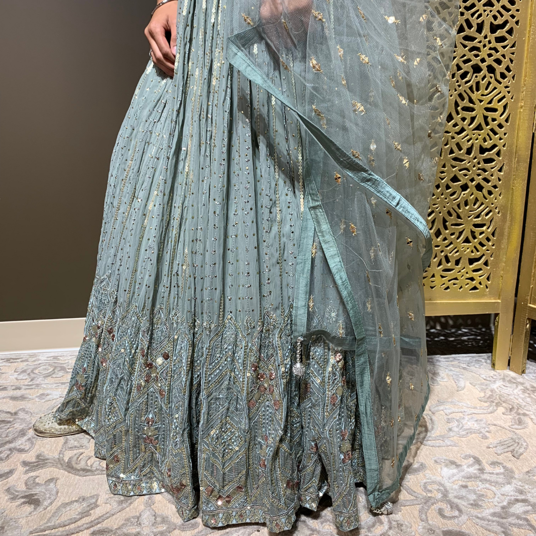 Dusty Mint Lehenga Set with Sequin Work and Mirror Handwork Blouse