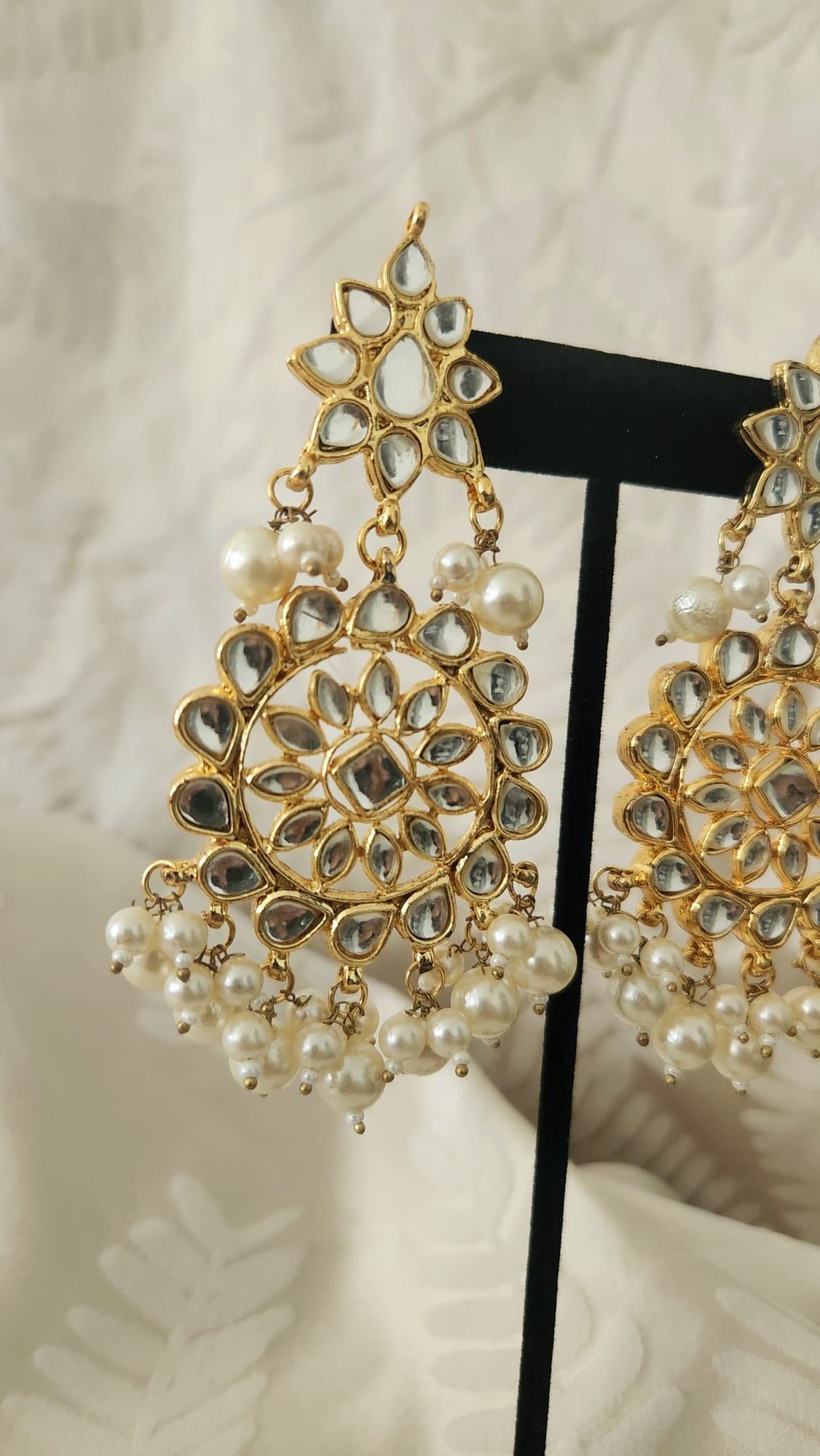 Gray Traditional Kundan & Pearls Gold Plated Maang Tikka & Earrings for Women