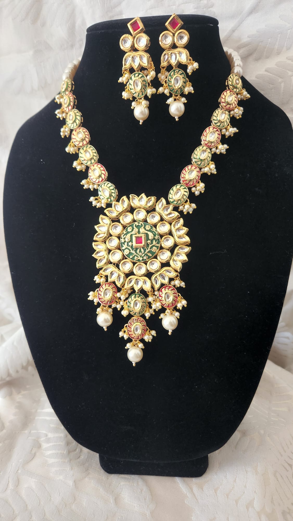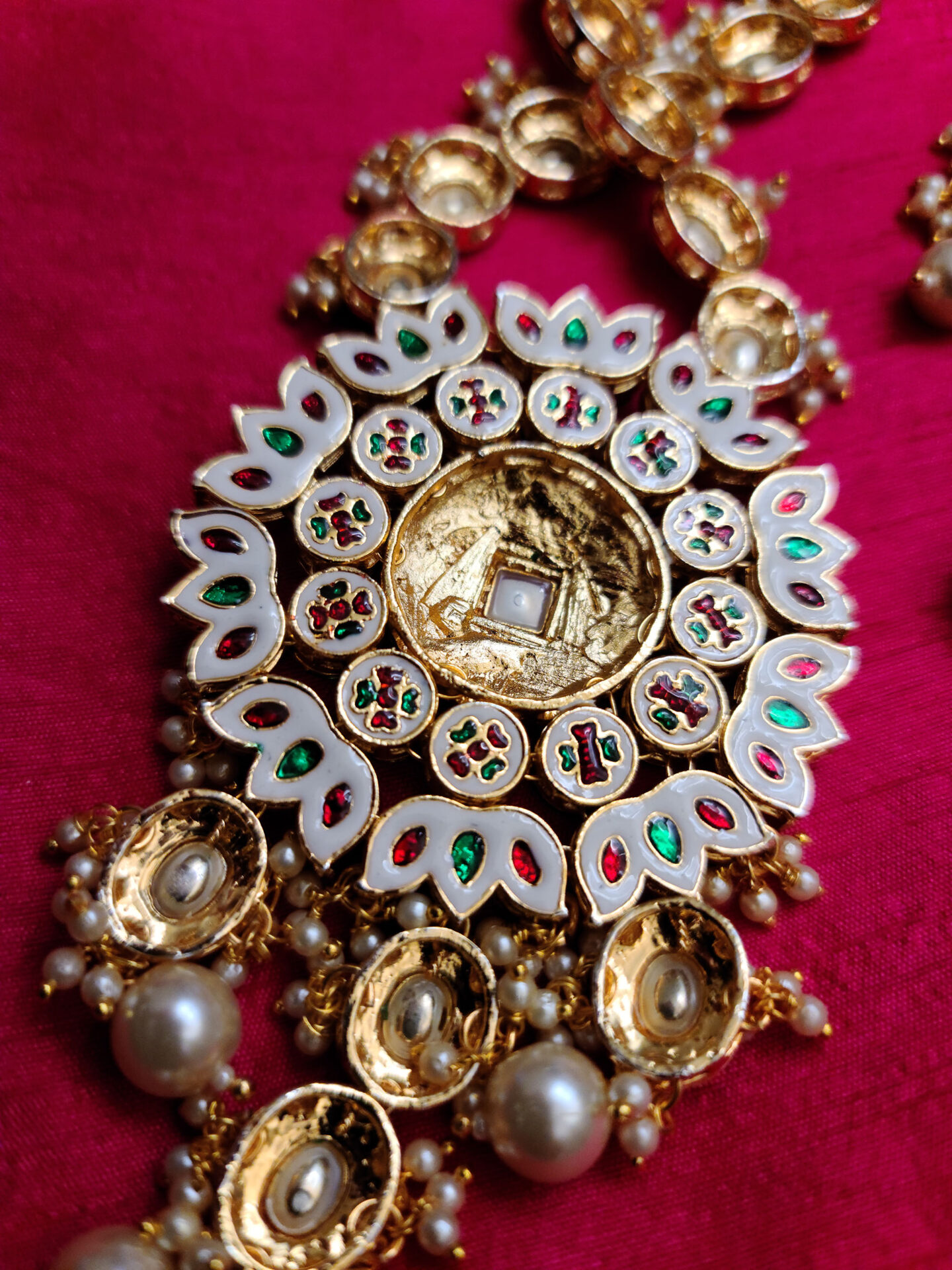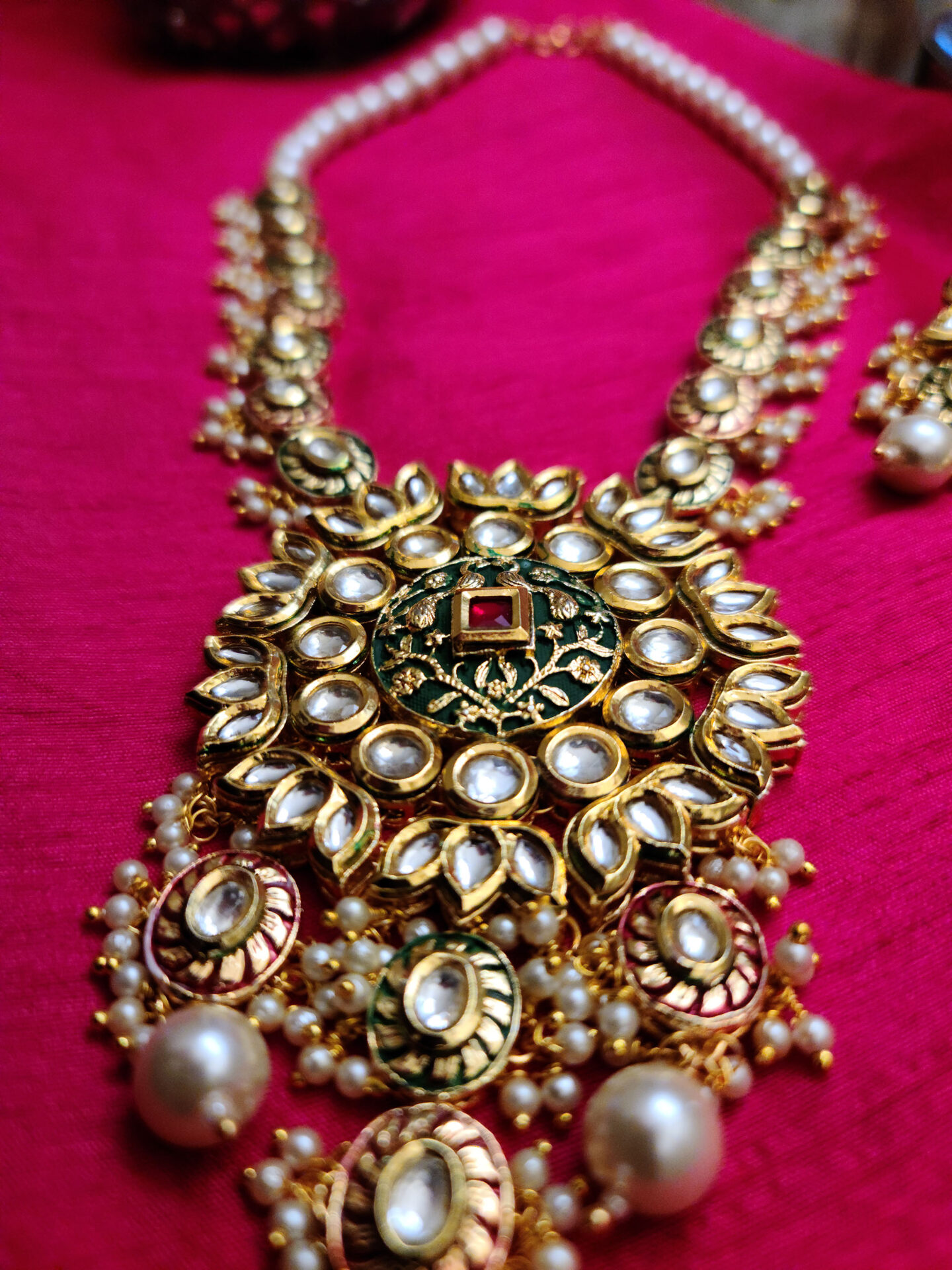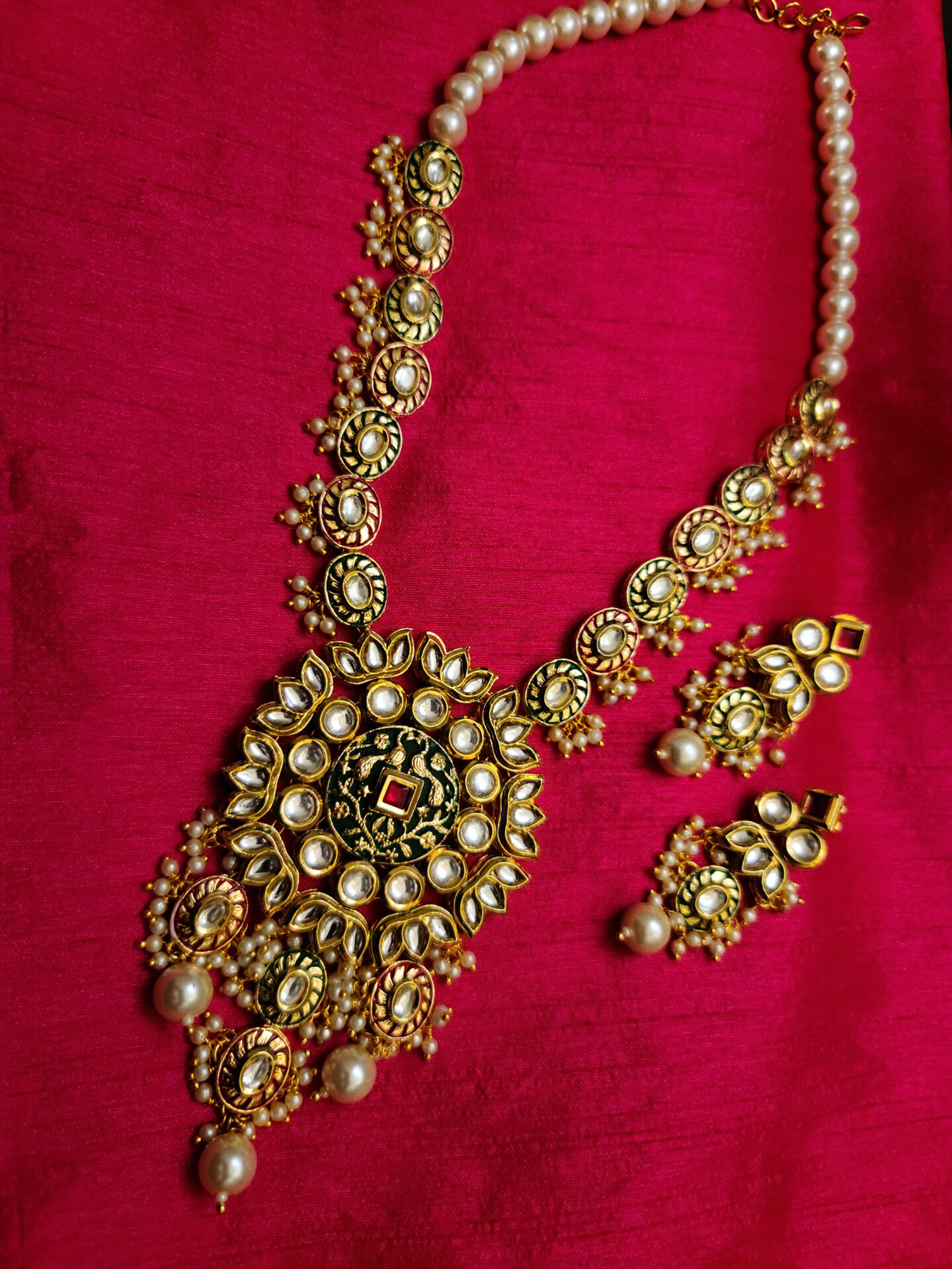 • Necklace Earring Gold Plated Kundan & Pearl Traditional Jewelry