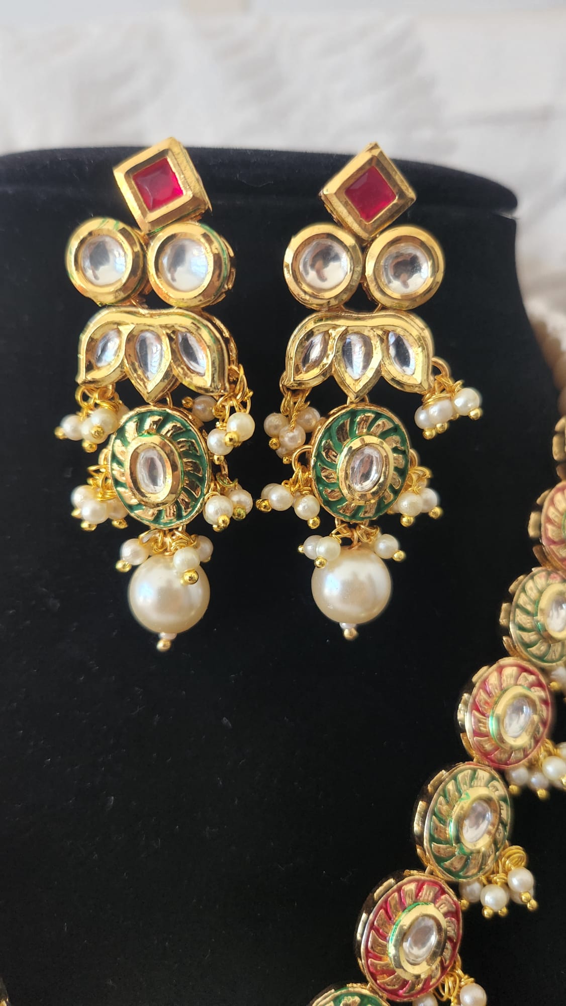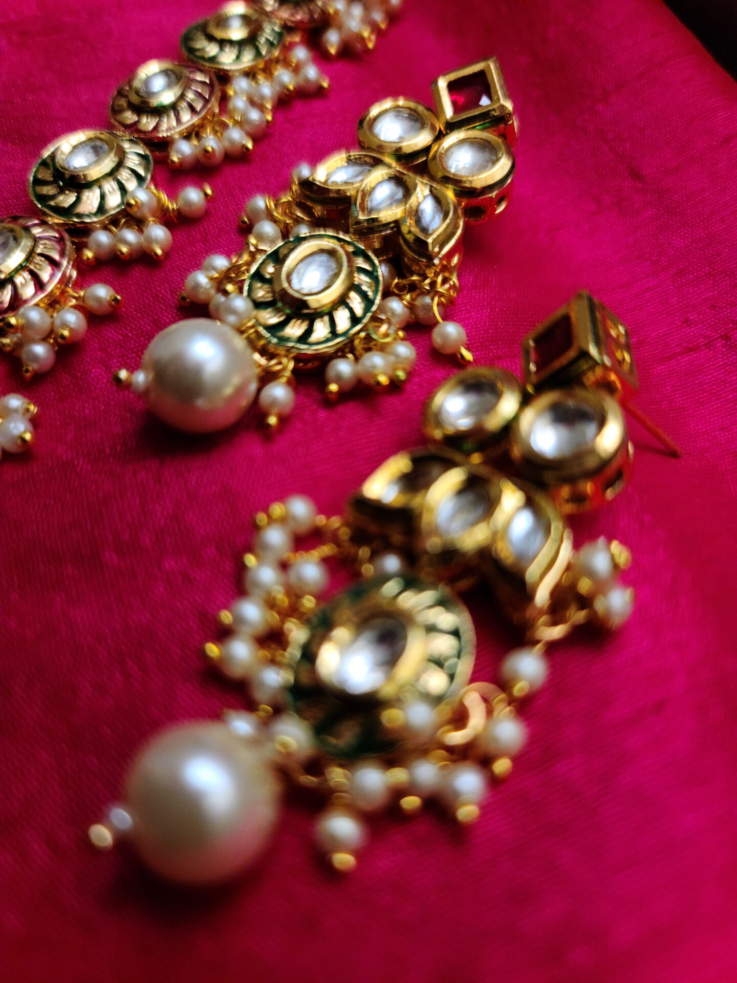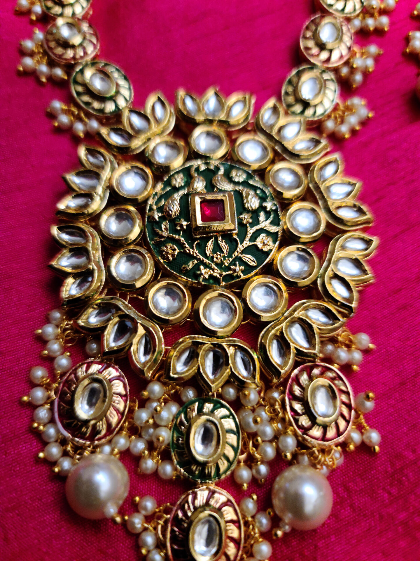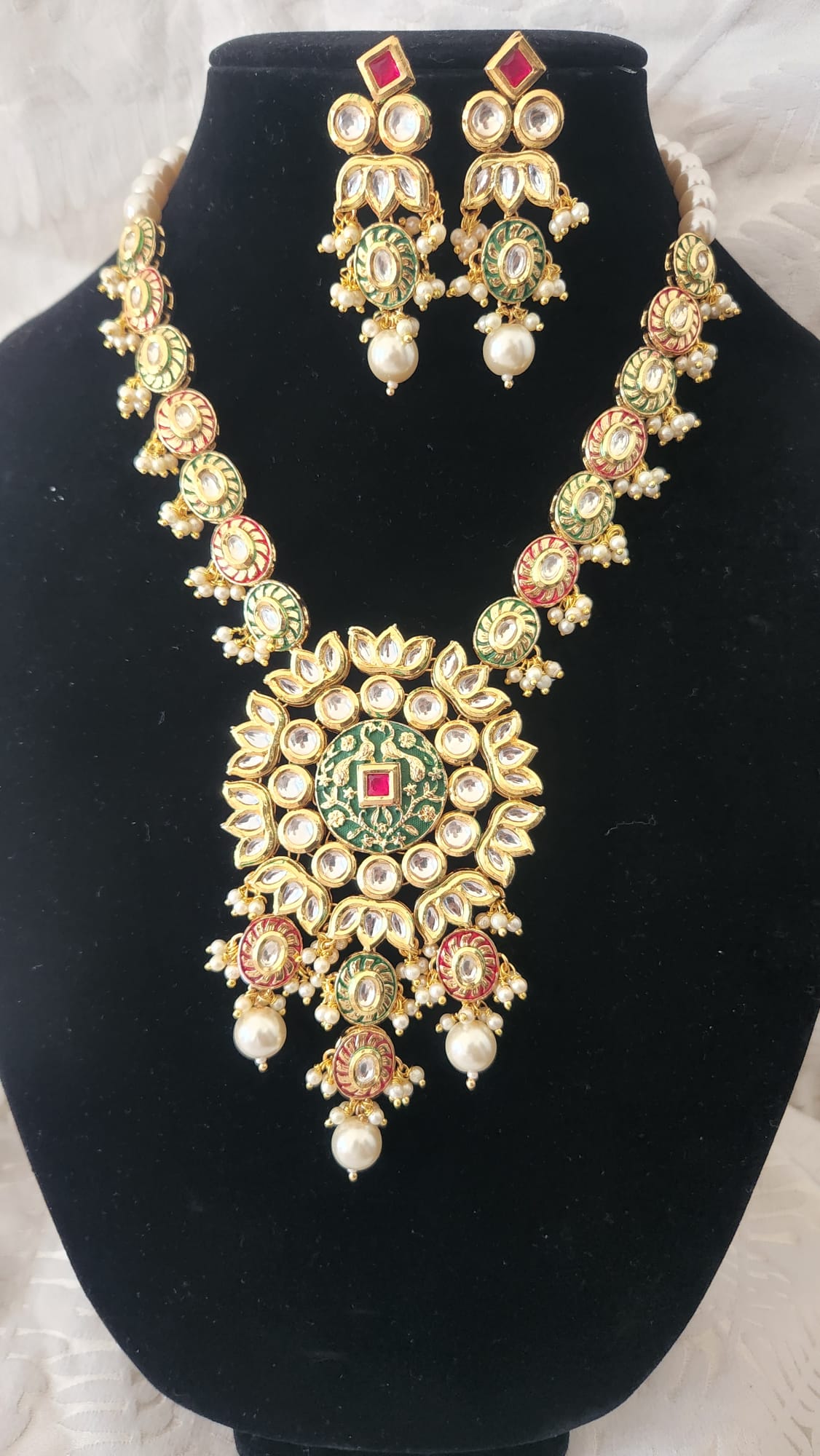 • Necklace Earring Gold Plated Kundan & Pearl Traditional Jewelry