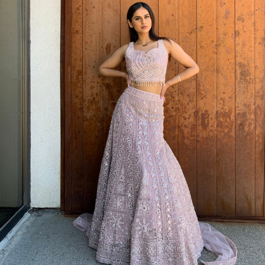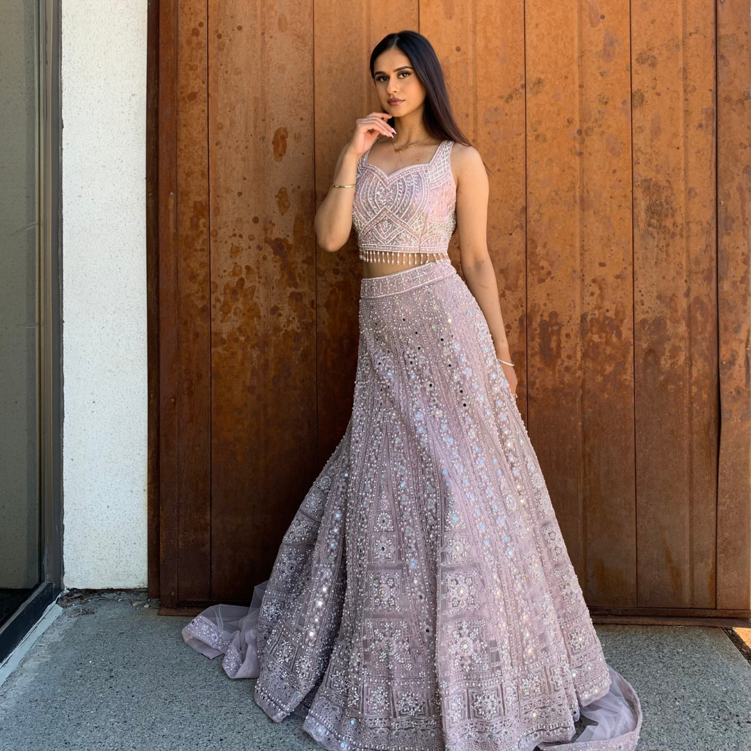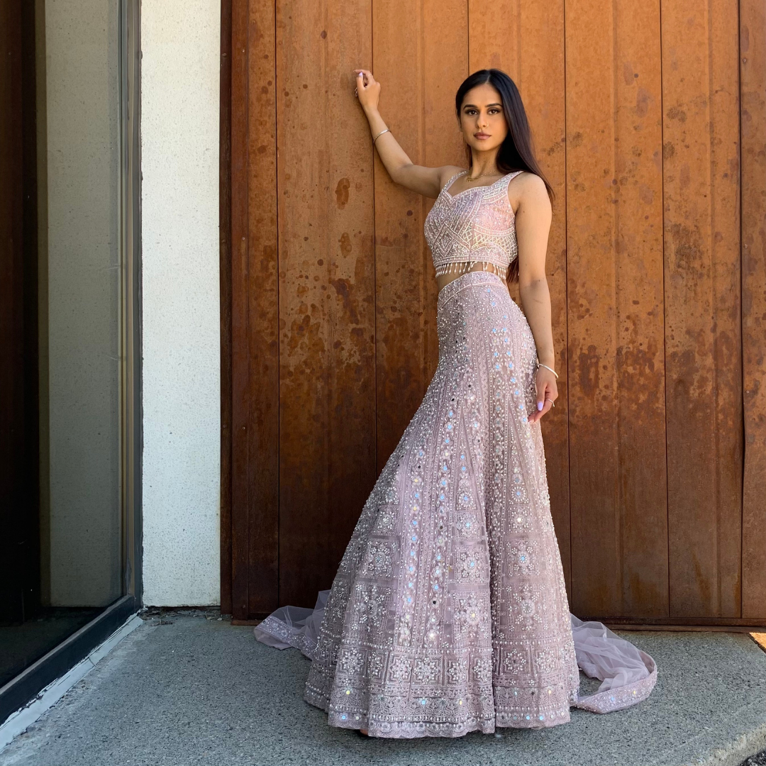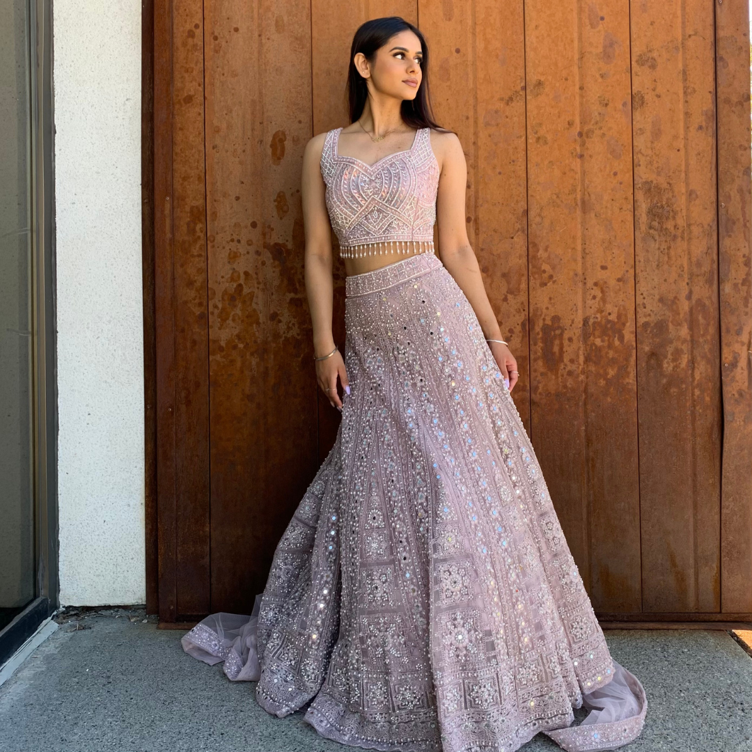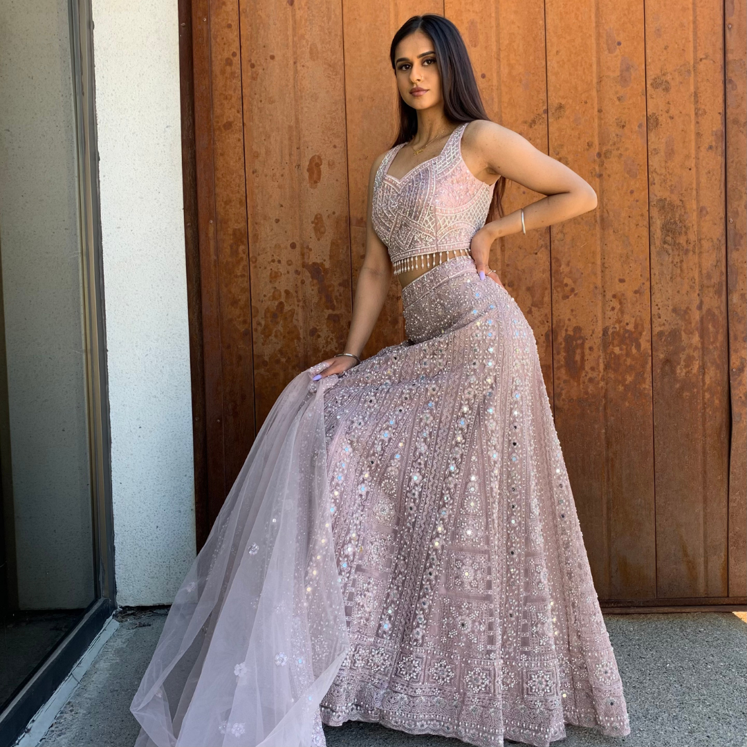 Material: Net, Georgette, Chiffon Colour: Dirty Blush Pink Sizes: XS-XL (Please mention in your order the fittings you might need) Occasions: Mehendi, Sangeet, Dholki, Maiyan, Watna, Wedding