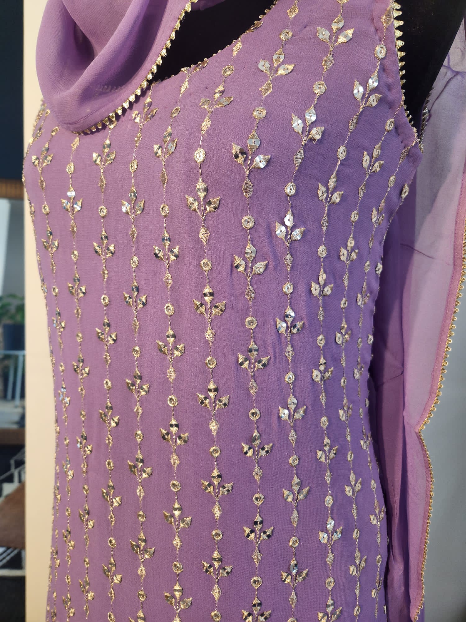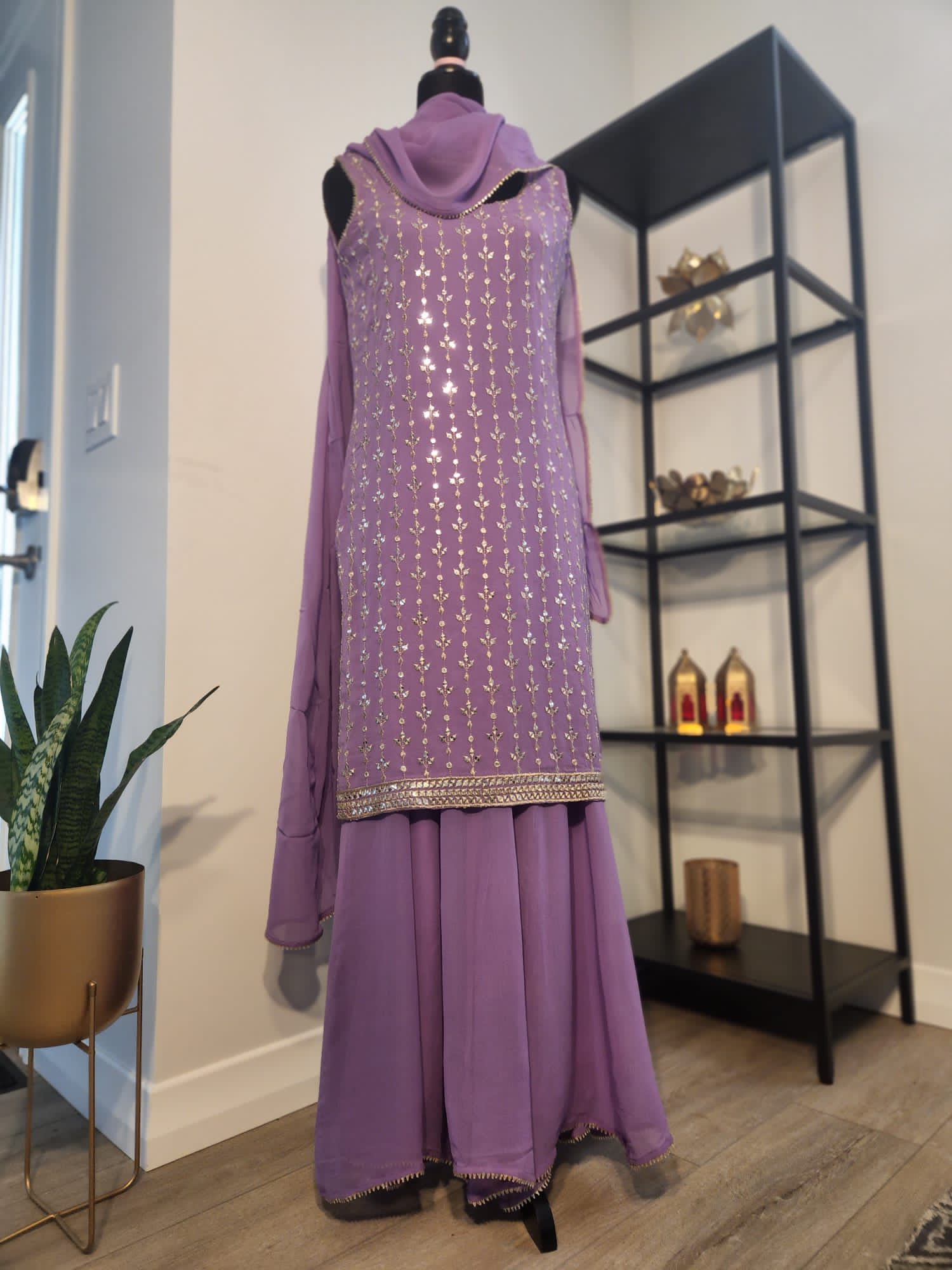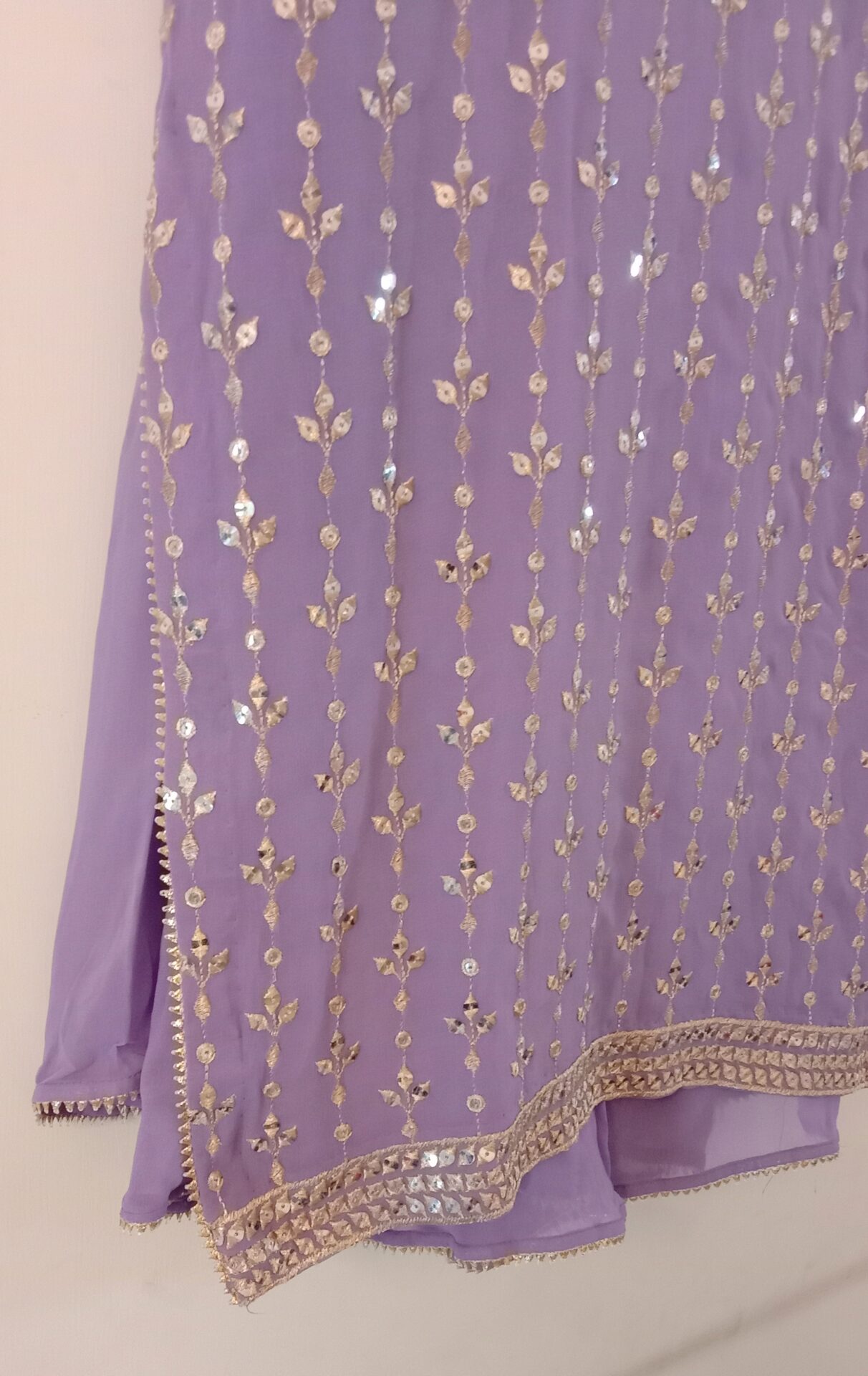 - Dry Clean Only Color: Purple Shirt Fully Sequence Tila Embroidery Dupatta Four Side Lace All Around Palazzo Lace