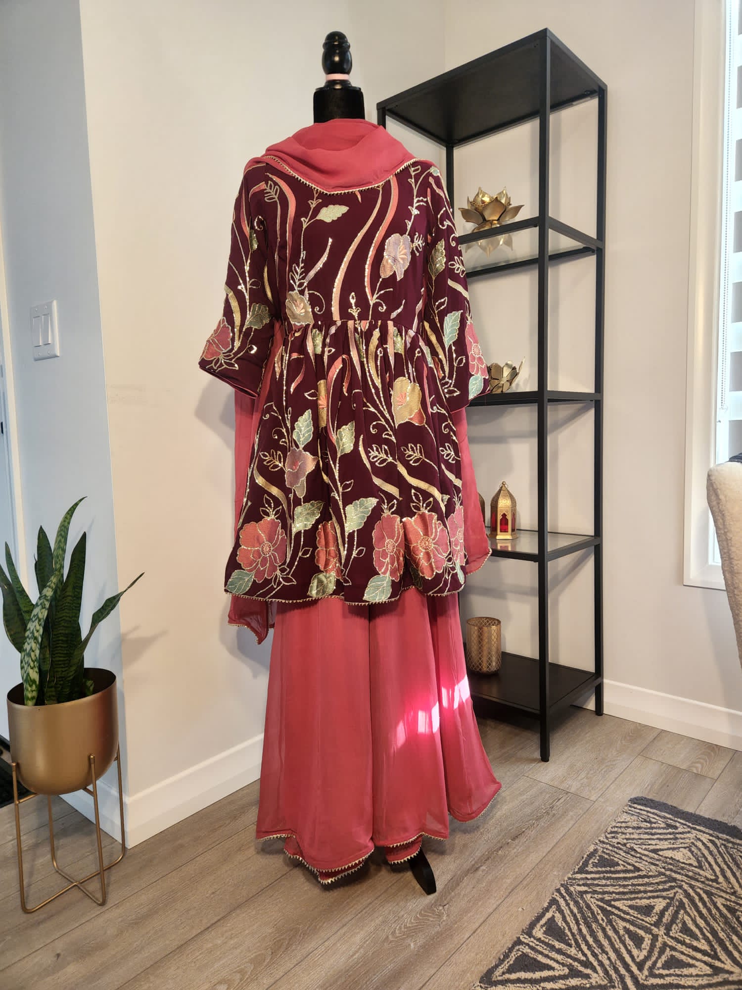 Wine & Peach Designer Palazzo Suit with Dupatta Punjabi Party Wear Dresses Ladies Girls Ethnic Wear Indian Handmade Boutique