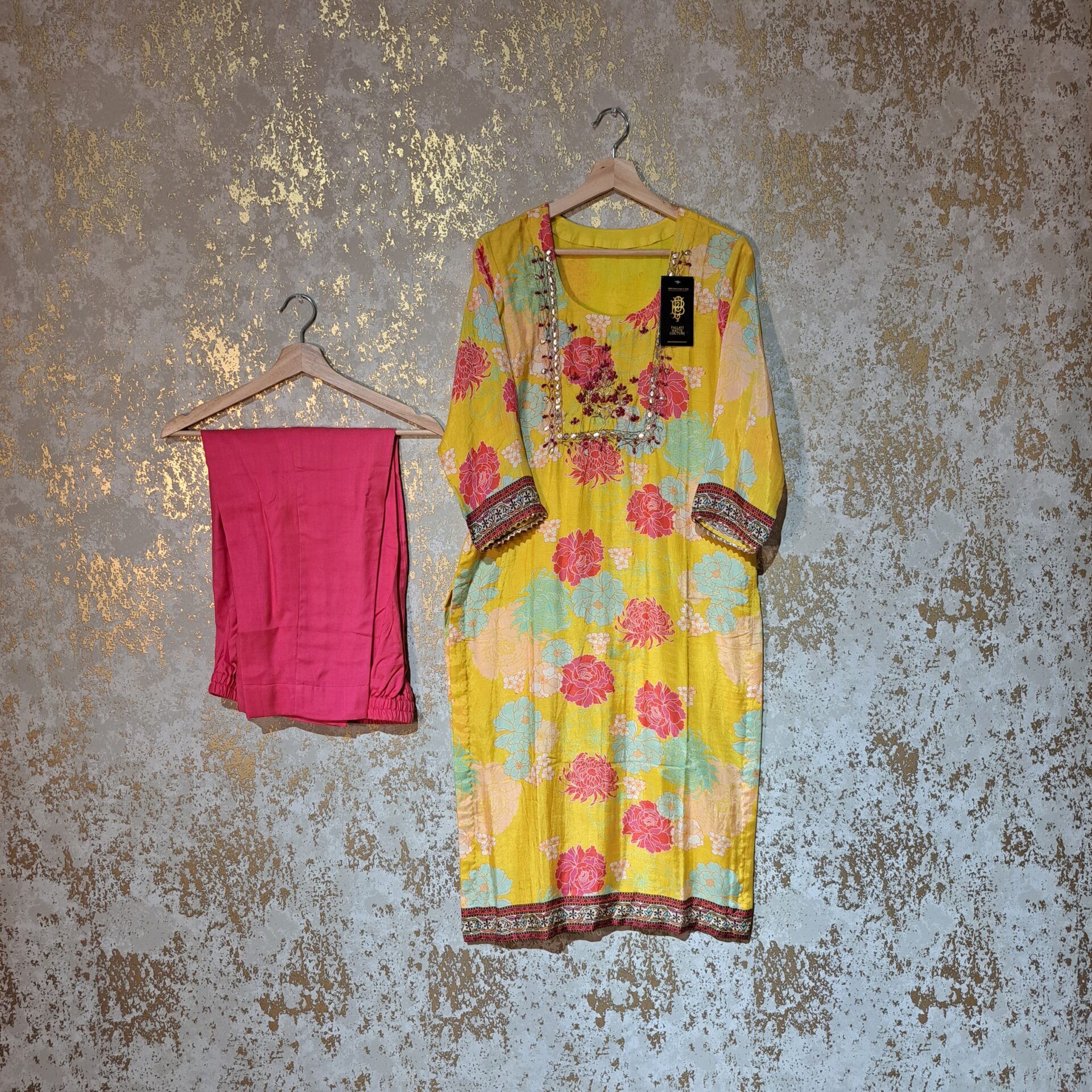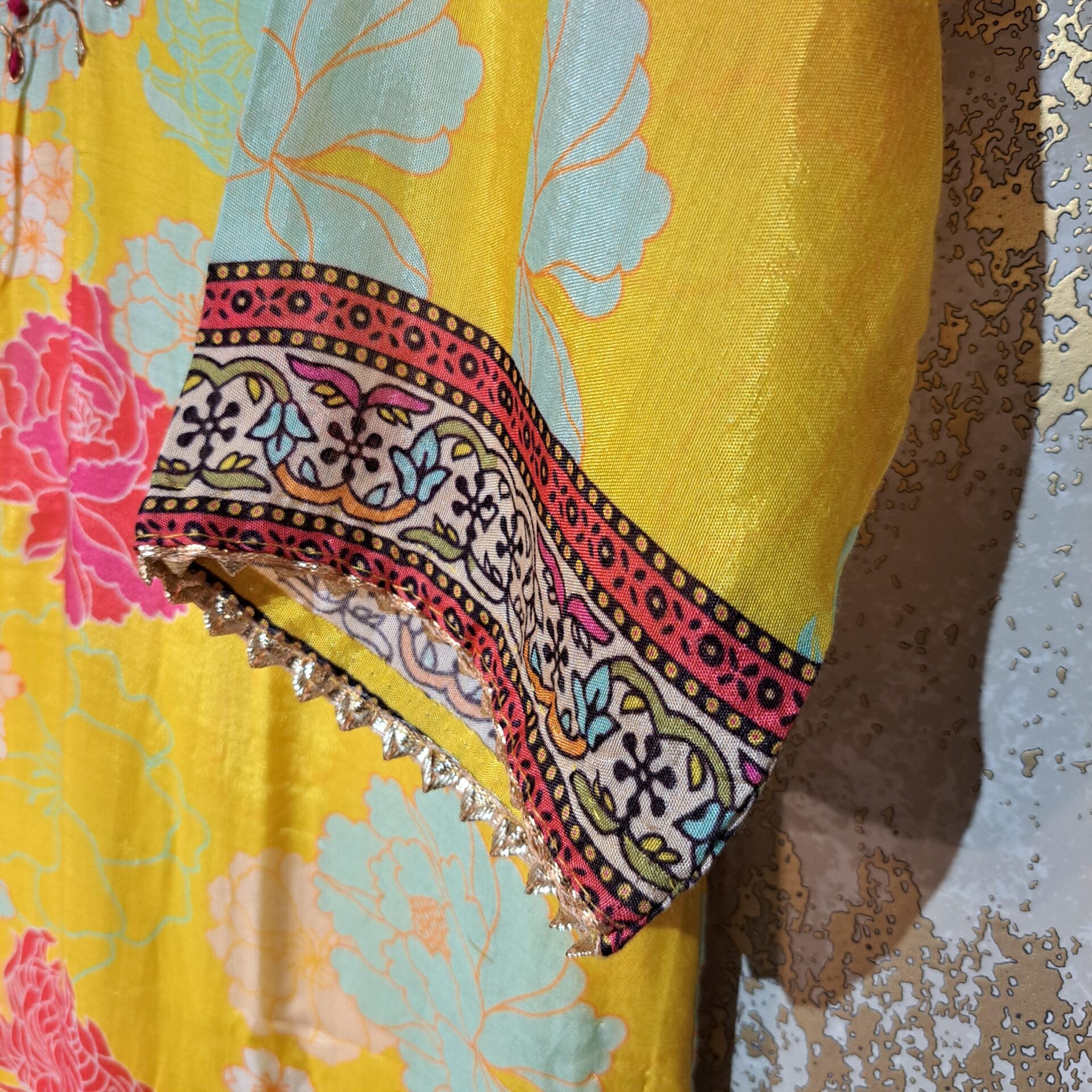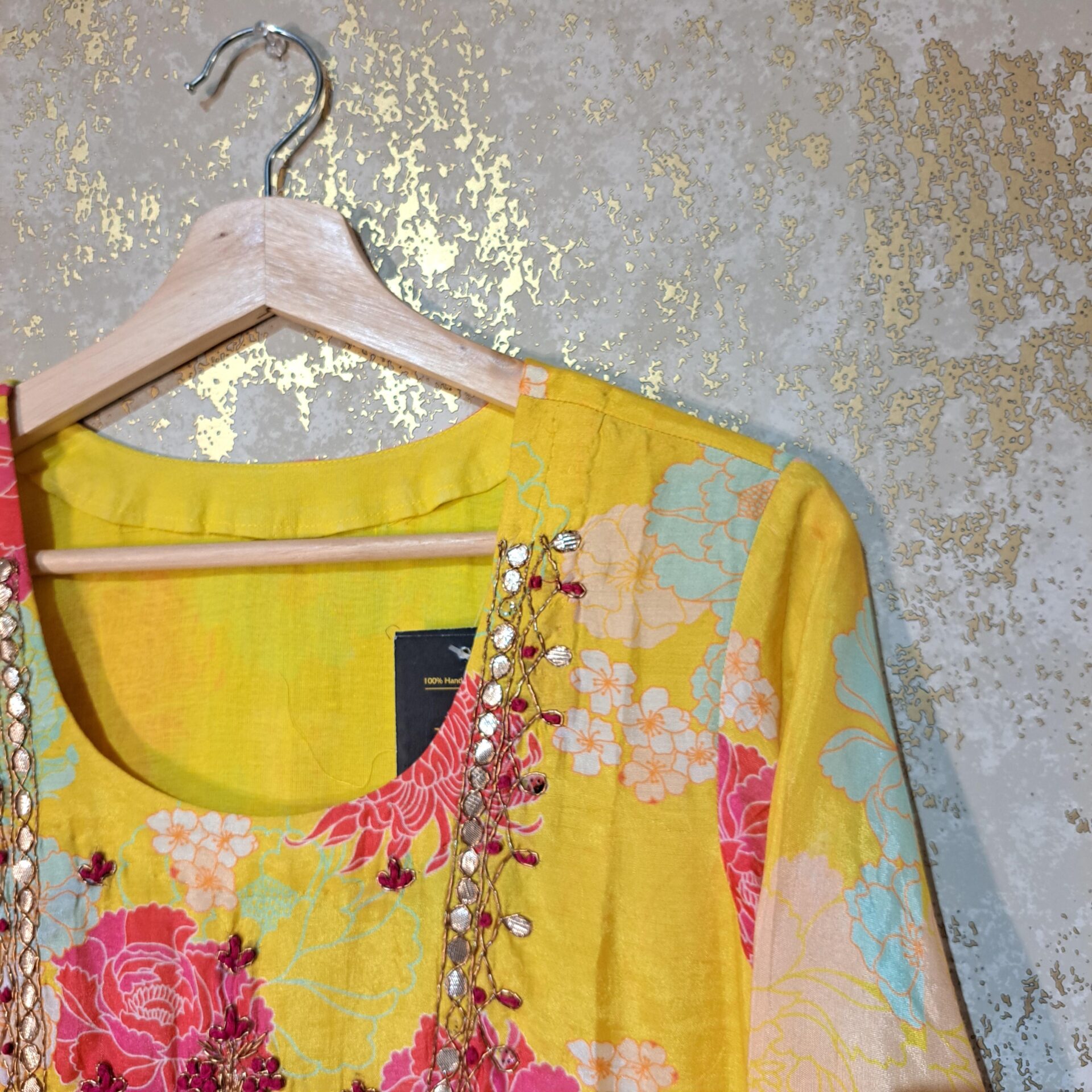 Fabric: Cotton Color Yellow Dupatta Fabric: Cotton Four Side Gota Lace Shirt Dupatta Digital Printed Completely Stitched with Cotton Inner This Would Be Classy yet Fashionable Choice for Festive Season or Regular Wear. Fully Stitched. Customer can Altered this from Small to XL Size because it has margins Inside. Customized Orders Welcome. Dry Clean Only / Fully Stitched Trouser Suit With Dupatta
