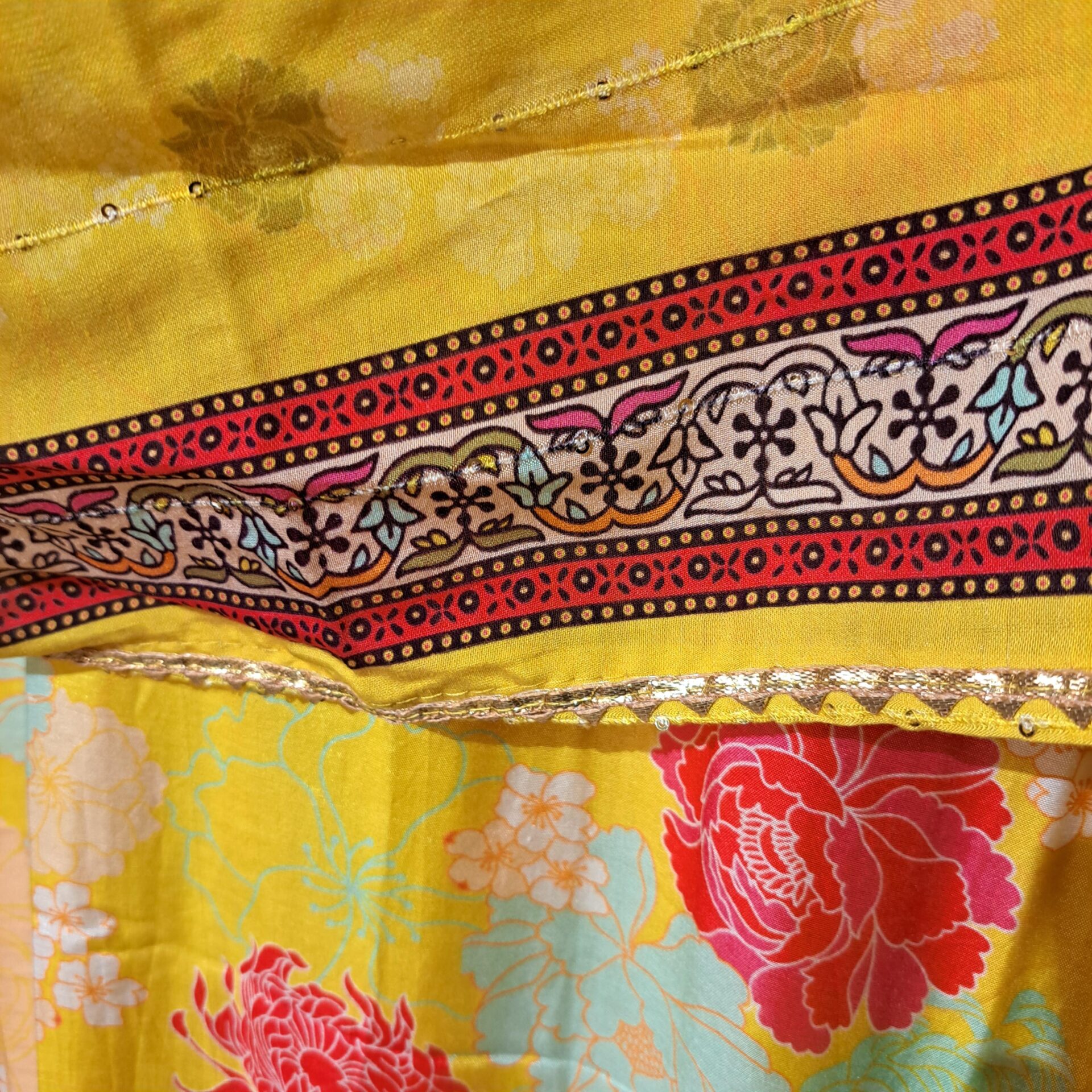 - Fabric: Cotton Color Yellow Dupatta Fabric: Cotton Four Side Gota Lace